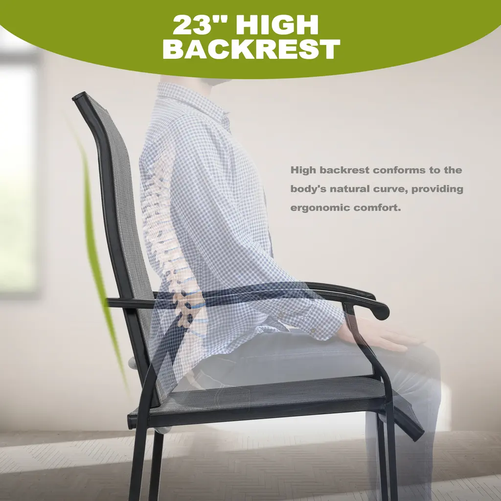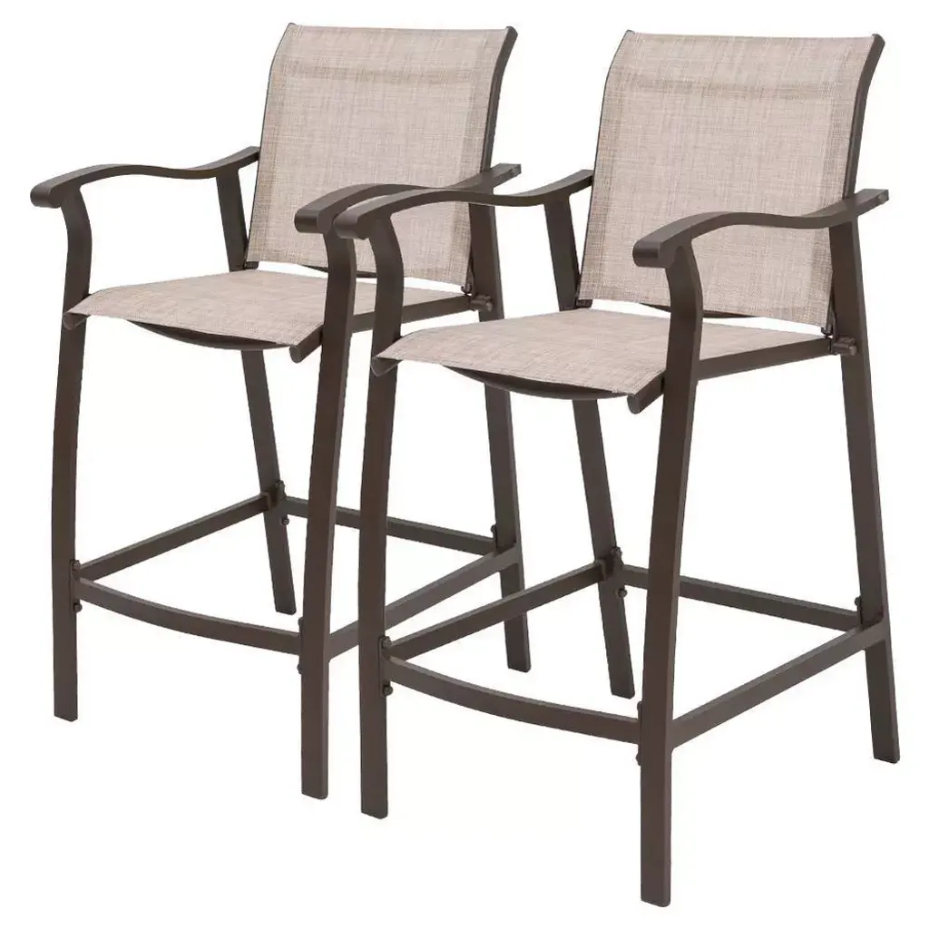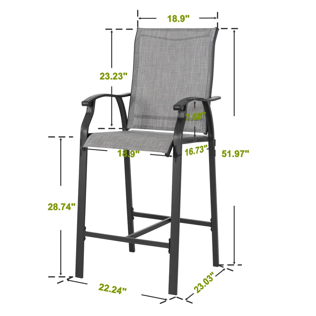 DescriptionTransform your patio into a chic oasis with our ultimate comfort bar stools! The bar stools are made from durable textilene fabric, so you can lounge comfortably even on the hottest summer days without worrying about wear and tear. They come with high backrests that provide great support for relaxing. For added convenience, there’s a footrest bar where you can easily prop your feet. Finally, the bar stools have non-slip pads on the bottom, so you won’t have to worry about them sliding around, even on slick surfaces. Product Features