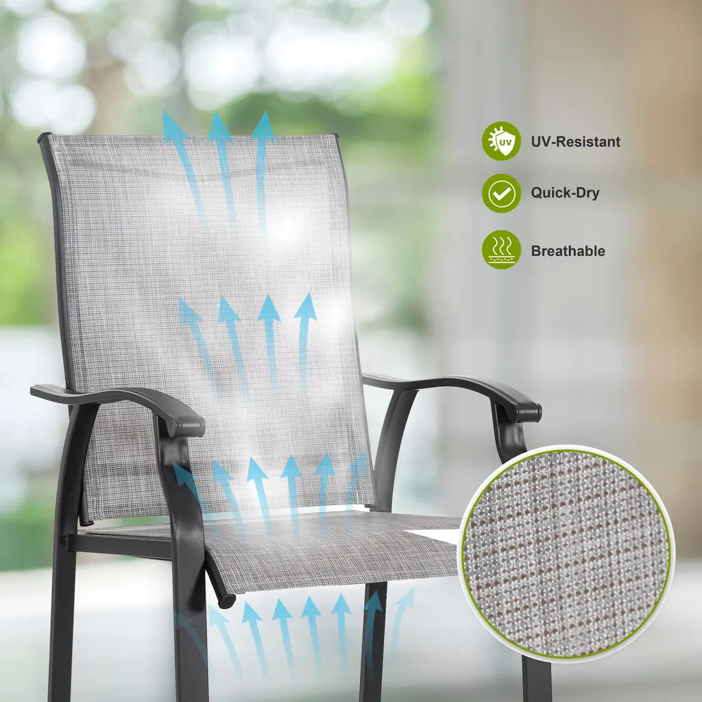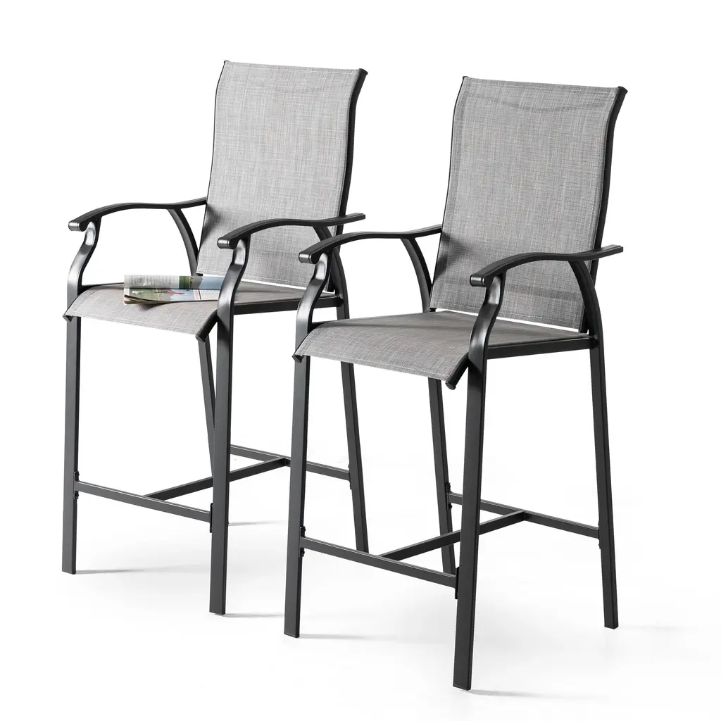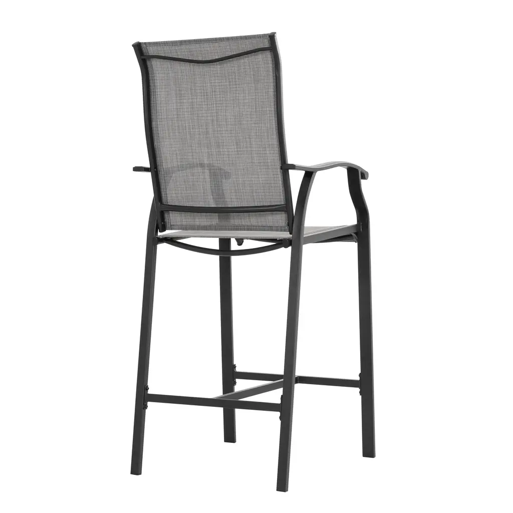 Outdoor 2-Piece Textilene Bar Stools With High Backrest, Gray - Grey