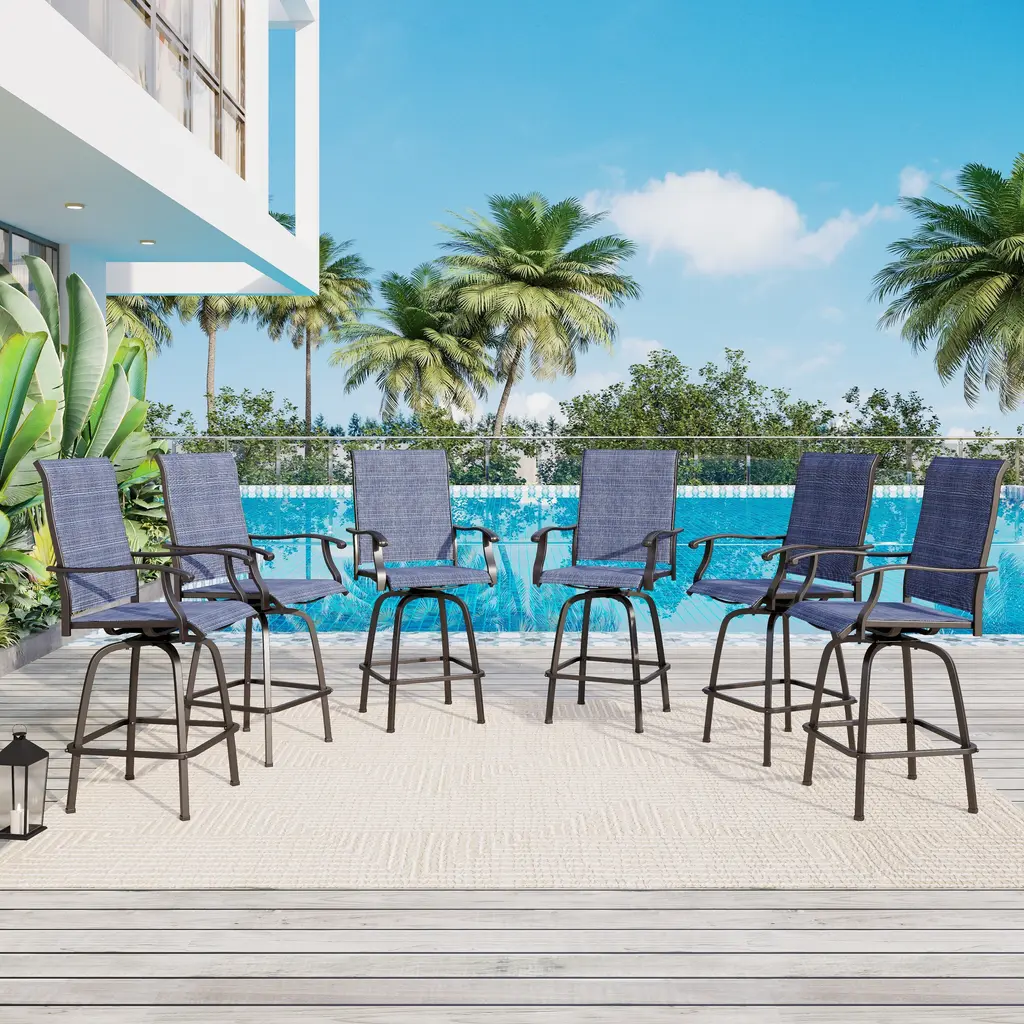 Outdoor All-Weather Swivel Patio Bar Stools With Arms(set Of 2/4/6) - Blue-Set Of 6