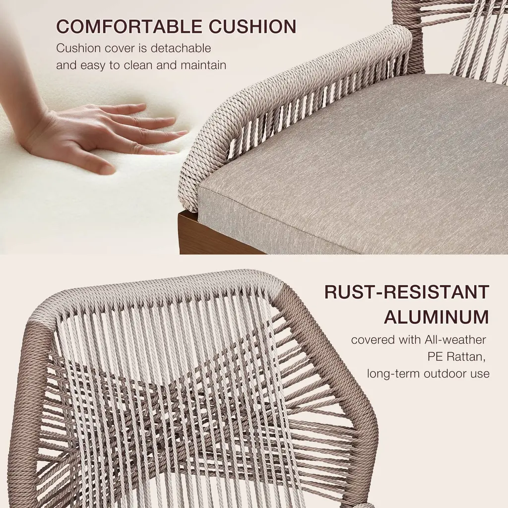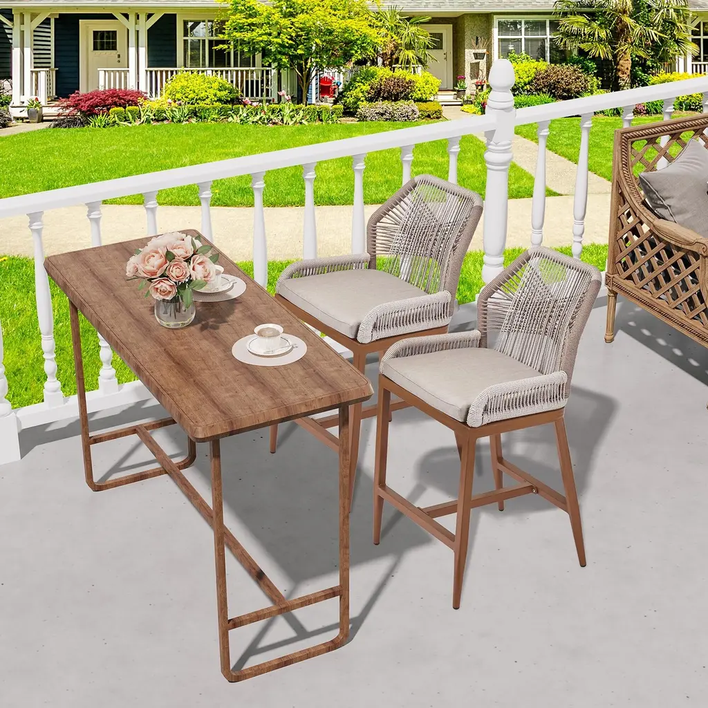 Weather-Resistant Durability: Constructed from premium, all-weather Textilene wicker, these outdoor bar stools are built to endure the toughest weather conditions. Whether facing heavy rain, blazing sunlight, or strong winds, you can rely on these stools to retain their style and functionality. Perfect for patios, balconies, and gardens, they provide reassurance for long-term outdoor use without sacrificing visual appeal. Stylish Comfort Features: Boasting a sophisticated cross-weave design, these bar stools not only elevate your outdoor space but also prioritize your comfort. The ergonomic backrest and supportive armrests reduce strain on your back, making them ideal for extended gatherings. Plus, the included plush cushions let you to relax and enjoy countless hours of conversation and leisure in your outdoor oasis. Sturdy and Resilient Construction: Designed with a rust-proof, powder-coated aluminum frame, these bar stools are engineered for outstanding strength and durability. They offer exceptional stability, accommodating weights of up to 350 pounds. Furthermore, the removable cushion covers are made from durable, easy-to-clean fabric, allowing you to maintain their fresh appearance effortlessly and focus more on enjoying your time outdoors. Perfectly Sized for Socializing: With a total height of 39.5 inches and a seat height of 24.8 inches, these stools are specifically designed for high-top tables and home bars. Their thoughtful dimensions ensure a comfortable seating experience for all guests, making them an ideal choice for entertaining. Whether you’re hosting a summer barbecue or a cozy evening gathering, these chic stools enhance your seating arrangement and add a touch of elegance to any occasion. Easy Assembly Process: These outdoor counter height bar stools come partially pre-assembled and include all necessary hardware as well as straightforward instructions for quick setup. Even those without extensive DIY skills will find the assembly process simple and can have them ready for use in under 30 minutes. This convenient setup means you can spend more time relaxing and enjoying your new stylish bar stools, without the hassle of intricate installation.