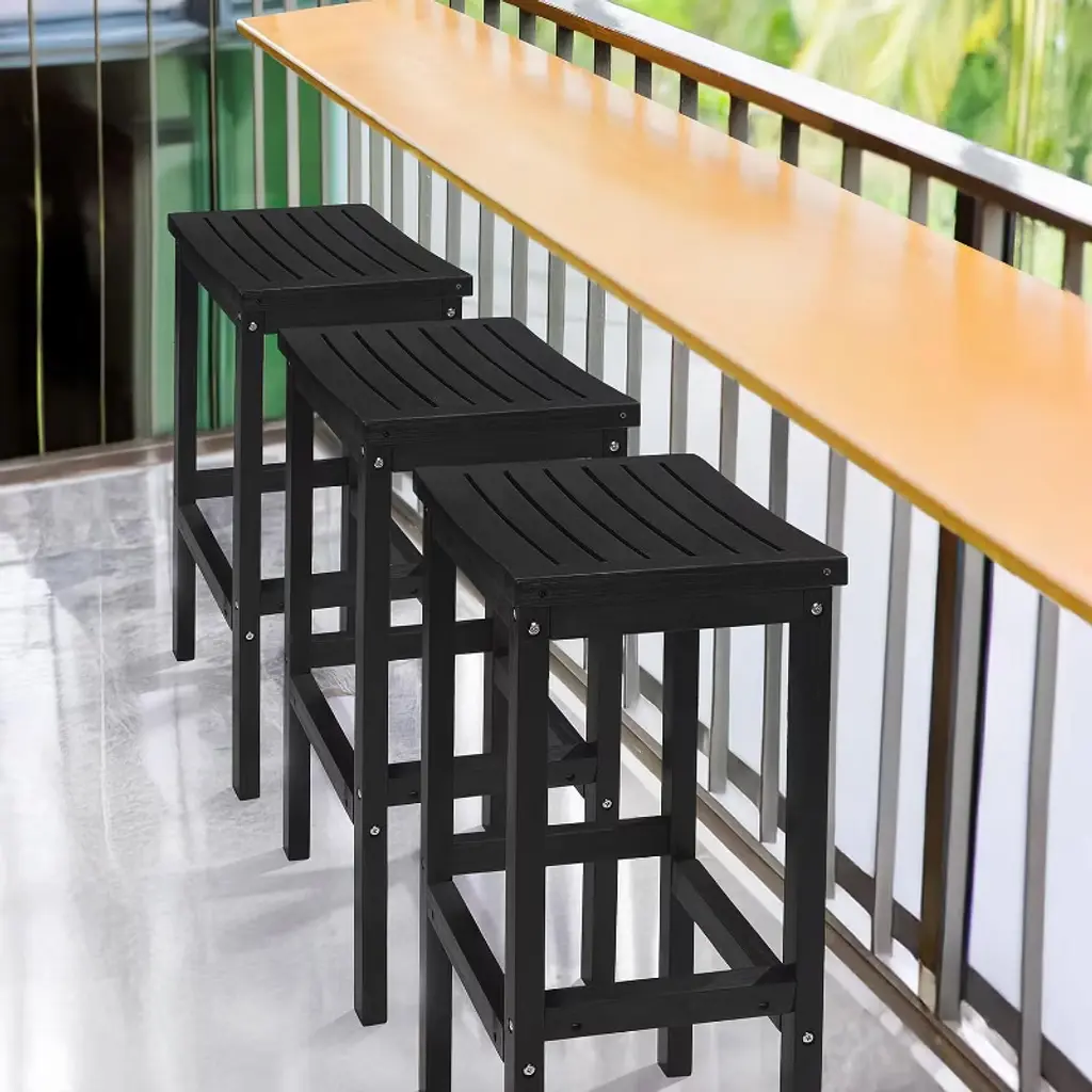 Outdoor Bar Stools Set Of 2, Solid Wood Bar Height Chairs Waterproof Patio Stools For Garden, Balcony, Kitchen, Backyard, Black