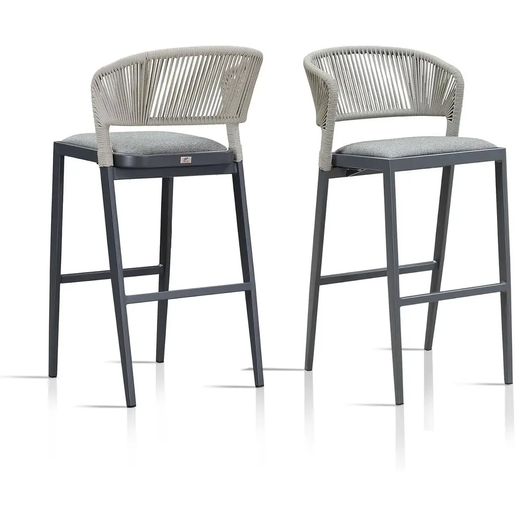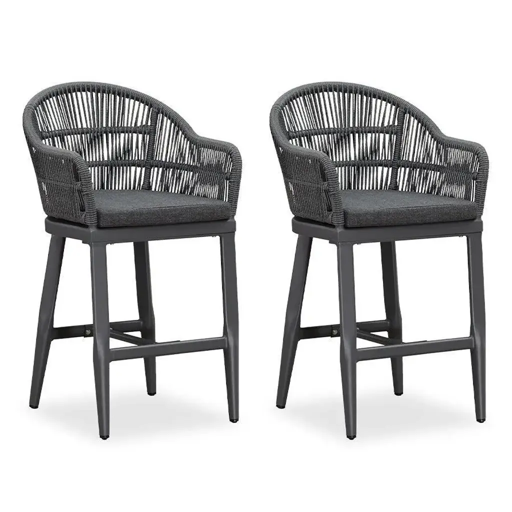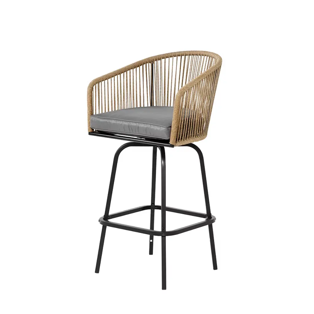Outdoor Bar Stools Set Of 4, 4-piece Patio Bar Stools W/armrests, All Weather Rattan Bar Chairs With Backrest, Wicker Bar Stools For Backyard, Gray