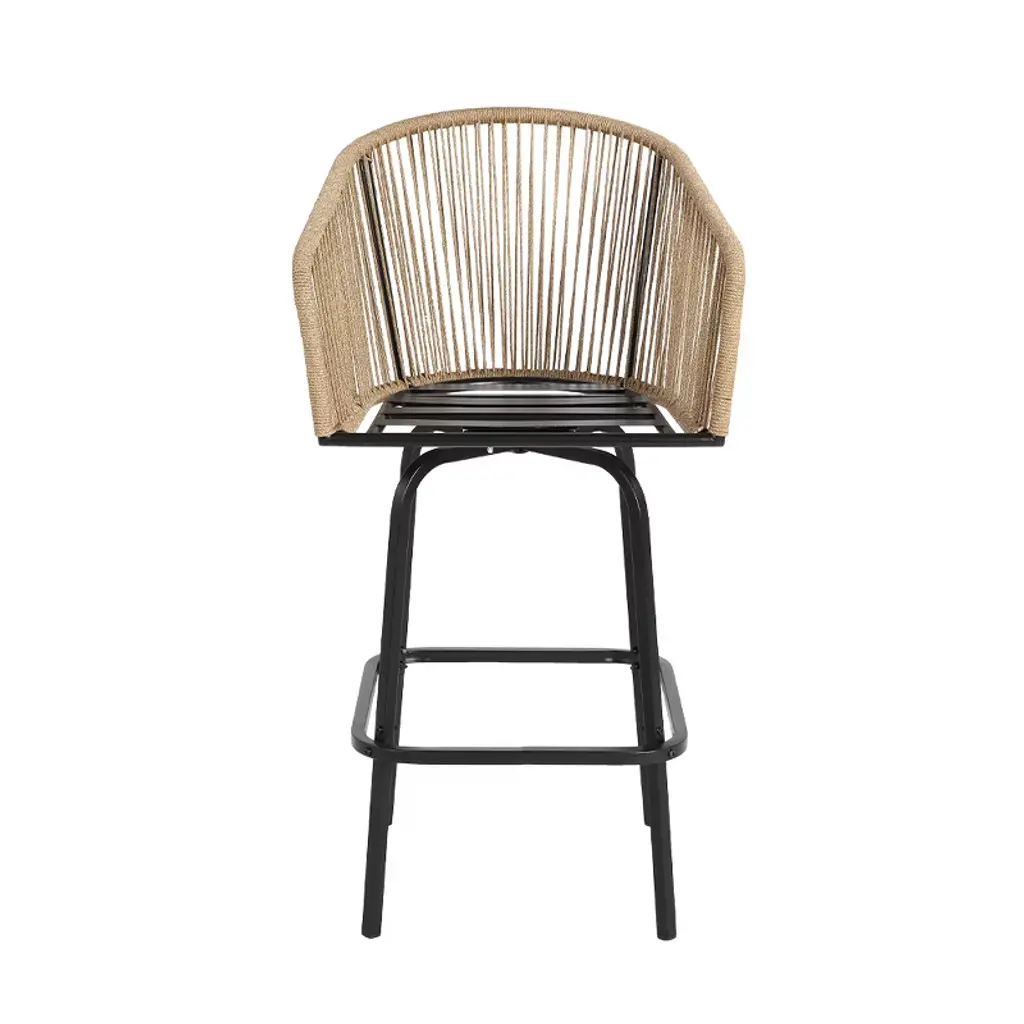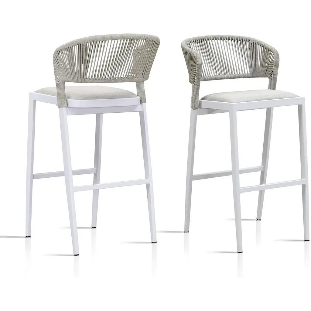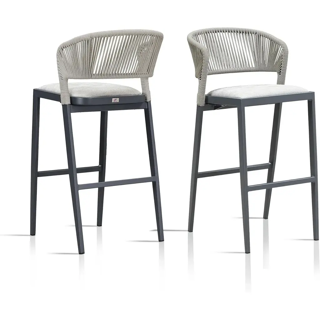 Outdoor Bar Stools Set Of 4, 4-piece Patio Bar Stools W/armrests, All Weather Rattan Bar Chairs With Backrest, Wicker Bar Stools For Backyard, Gray