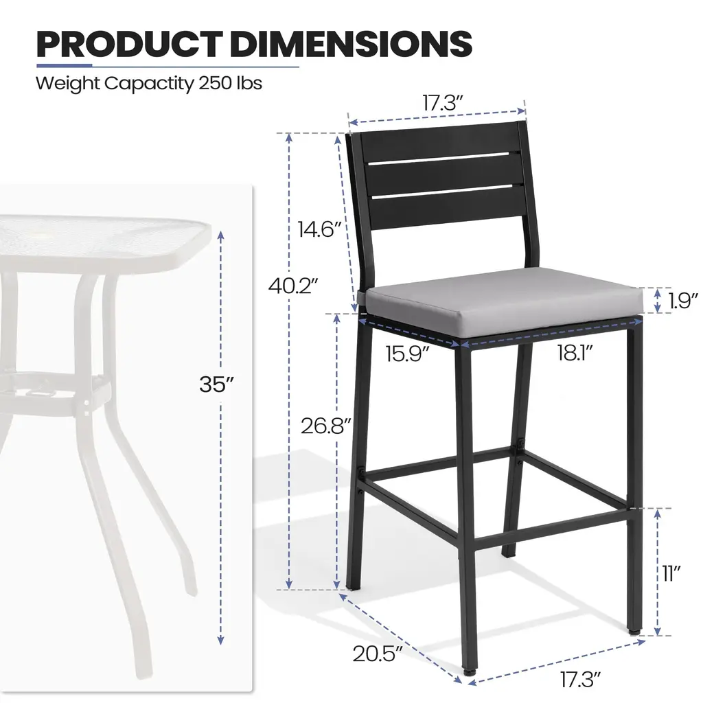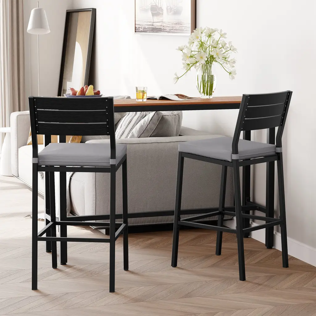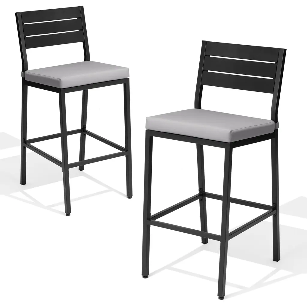 Outdoor Barstool Counter Height Bar Stools With Cushion - See Picture - 2-Piece Set, Light Gray