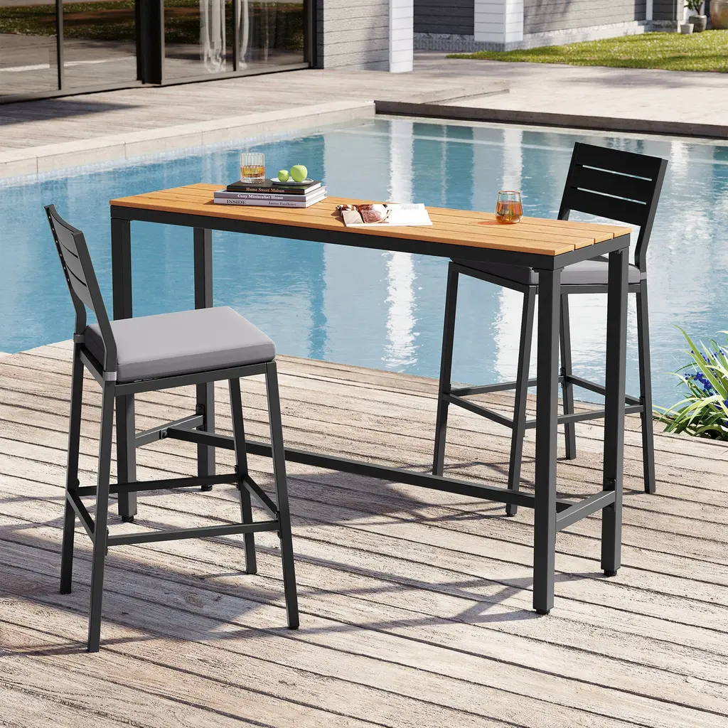 Add modern style to your space with this set of barstools from Crestlive Products. The outdoor indoor counter-height bar stools are made of sturdy powder-coated metal frame. Features slatted back and comfortable thick cushion. These stools come with footrest for added comfort. The simple lines of the design highlight the modern and stylish. Perfect for all types of outdoor events, you can't go wrong with these barstools.Features:Dimensions: