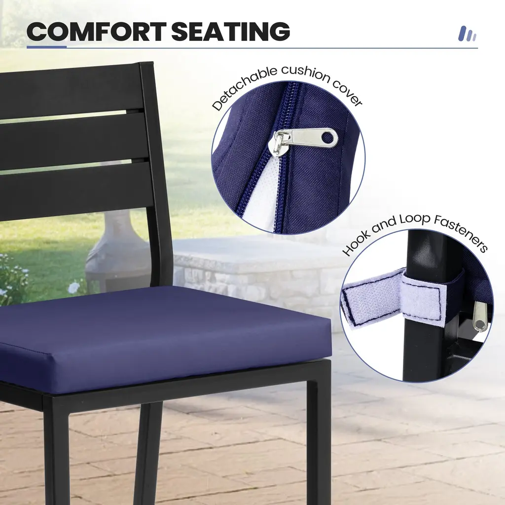 Outdoor Barstool Counter Height Bar Stools With Cushion - See Picture - 4-Piece Set, Navy Blue