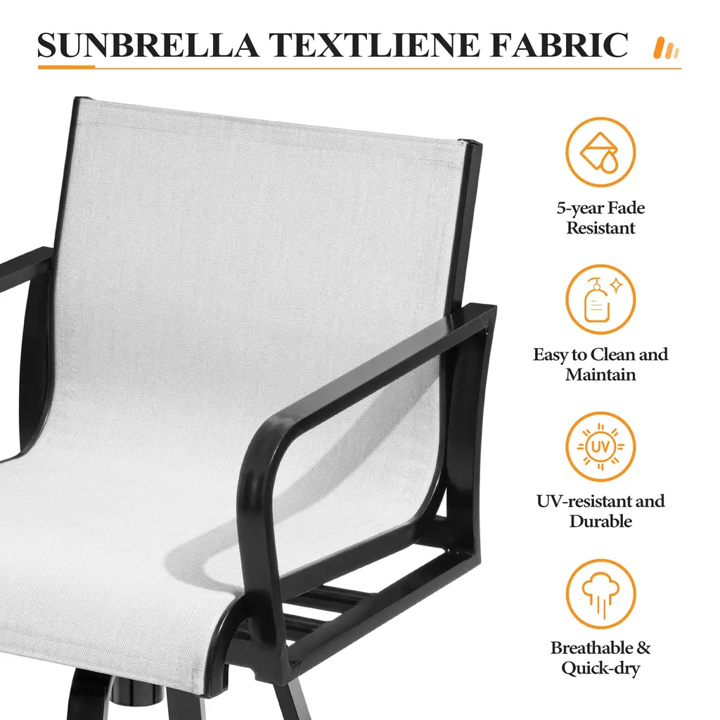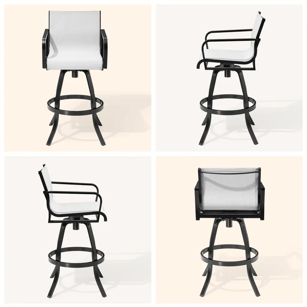 Complete your patio bar area with this set of four all-weather bar stools. Coming in a set of 4, these barstools are made of aluminum frame and feature breathable textilene sling from Sunbrella. These stools boast swivel seats for freedom of movement and come with footrest and backrest for comfort added.Features:Dimensions:Same barstools set of 2: 37964610