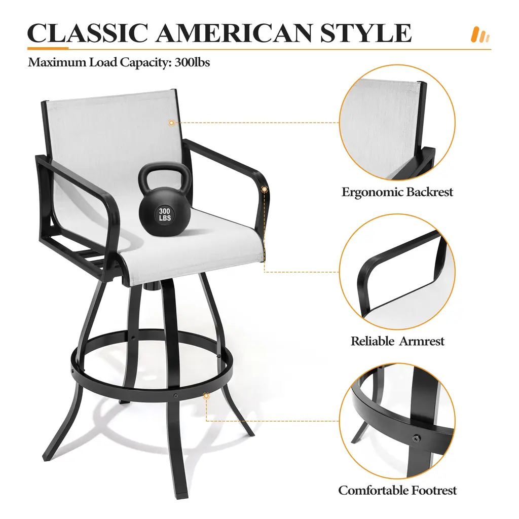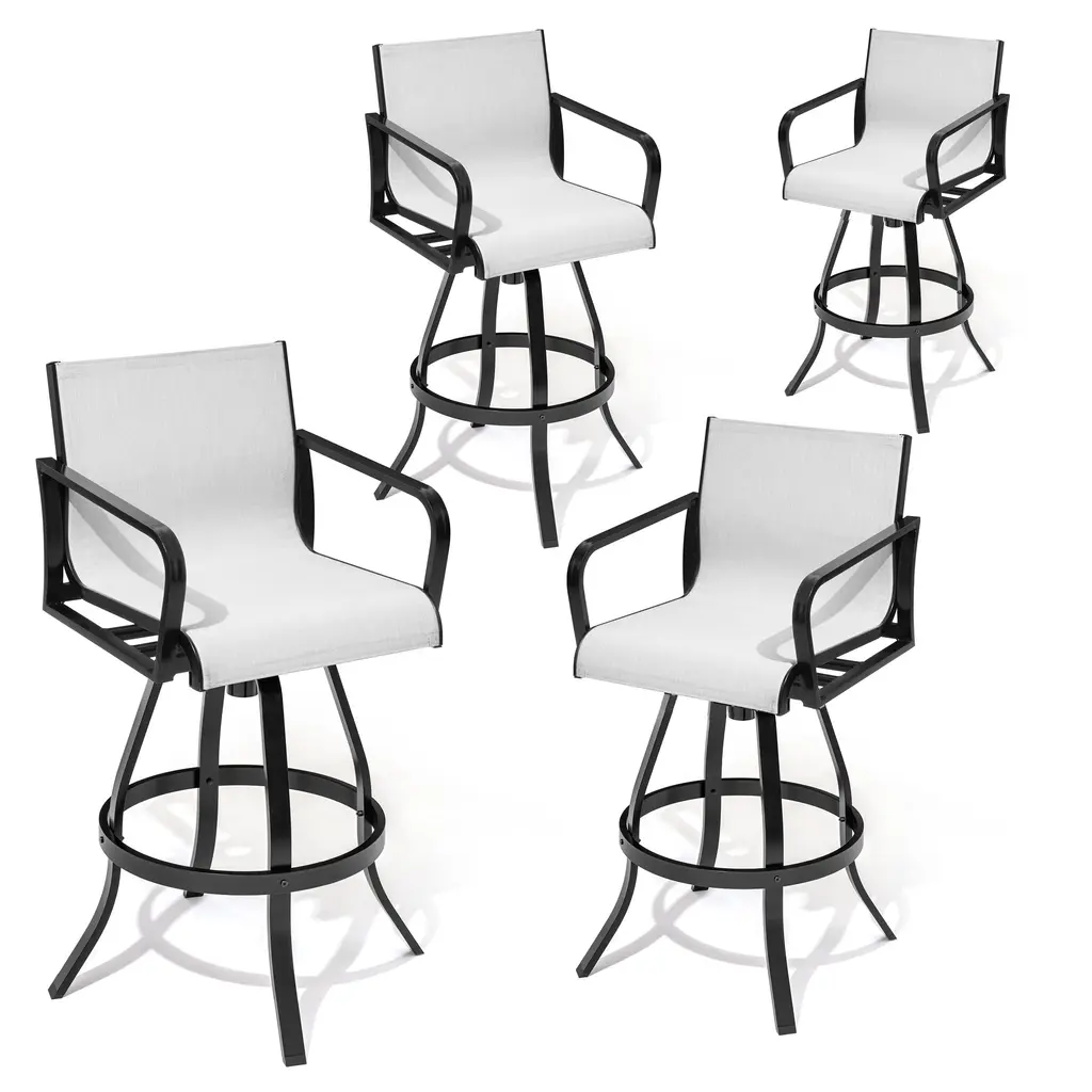 Outdoor Barstools With Back, Bar Stools Swivel Bar Chairs Set Of 4, Bar Height, With Sunbrella Textilene Mesh - See Picture - Augustine Oyster