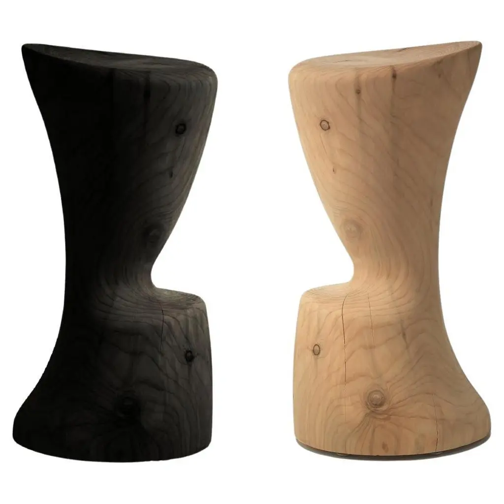 Outdoor Cedar Wood Barstool Carved From A Single Block Of Scented Cedar