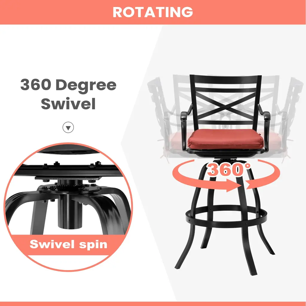 Complete your patio dining or bar space with this Pellebant set of outdoor bar stools. These stools have durable cast aluminum frames and sunbrella fabric seats for optimal durability and comfort. This outdoor bar set is ideal for any patio. A 360-degree swivel function let's you move around with ease. Enjoy a balmy dinner under the stars in your own backyard with this set. Features:Dimensions:Notes: