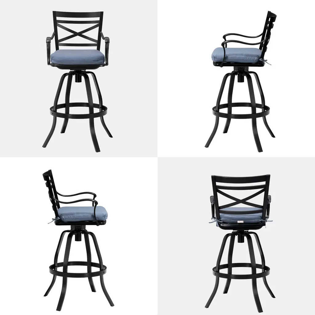 Outdoor Patio Bar Stools Aluminum Swivel Bar Chair With Sunbrella Cushion - 21.7 In W X 16.5 In D X 46 In H - Spectrum Denim-4Pc