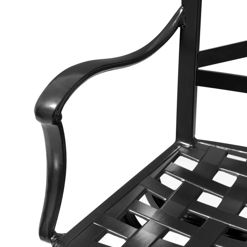 The patio swivel bar stools are made of sunbrella fabric and sturdy powder-coated cast aluminum frame. These stools have durable cast aluminum frames and sunbrella fabric seats for optimal durability and comfort. The armrest and backrest design of the bar stools are curved and designed to be ergonomic. These stools boast swivel seats for freedom of movement and come with soft cushion for added comfort. Enjoy a balmy dinner under the stars in your own backyard with this set. Features:Dimensions: