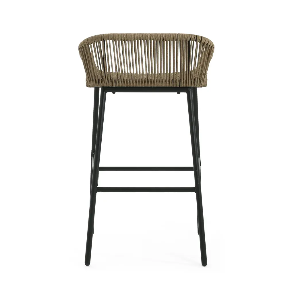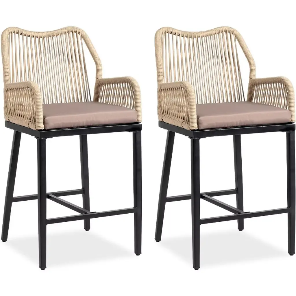 Outdoor Rope Bar Stool With Low Back And Iron Frame, Set Of 2
