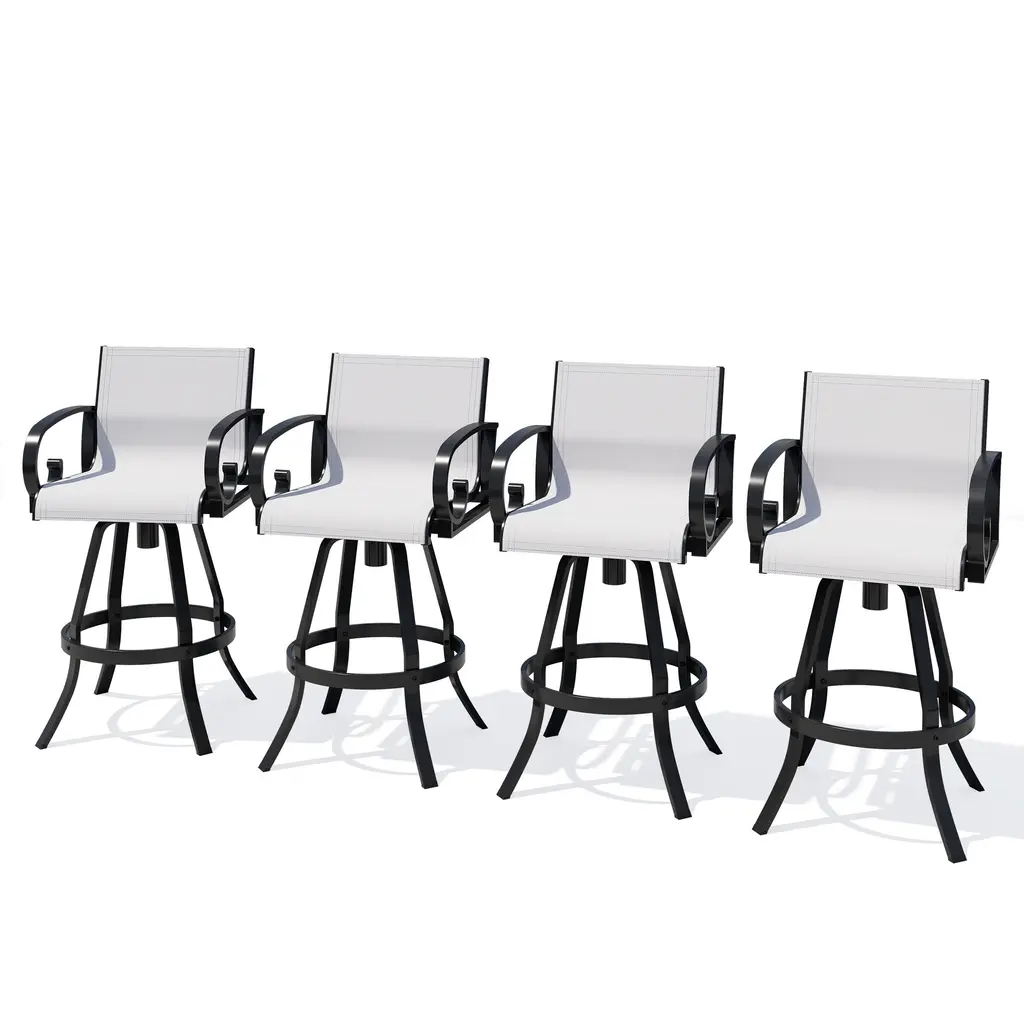 Outdoor Sunbrella Aluminum Swivel Bar Stool 2-Piece Bar Height Stool Bar Chairs - Augustine Oyster - 4Pc