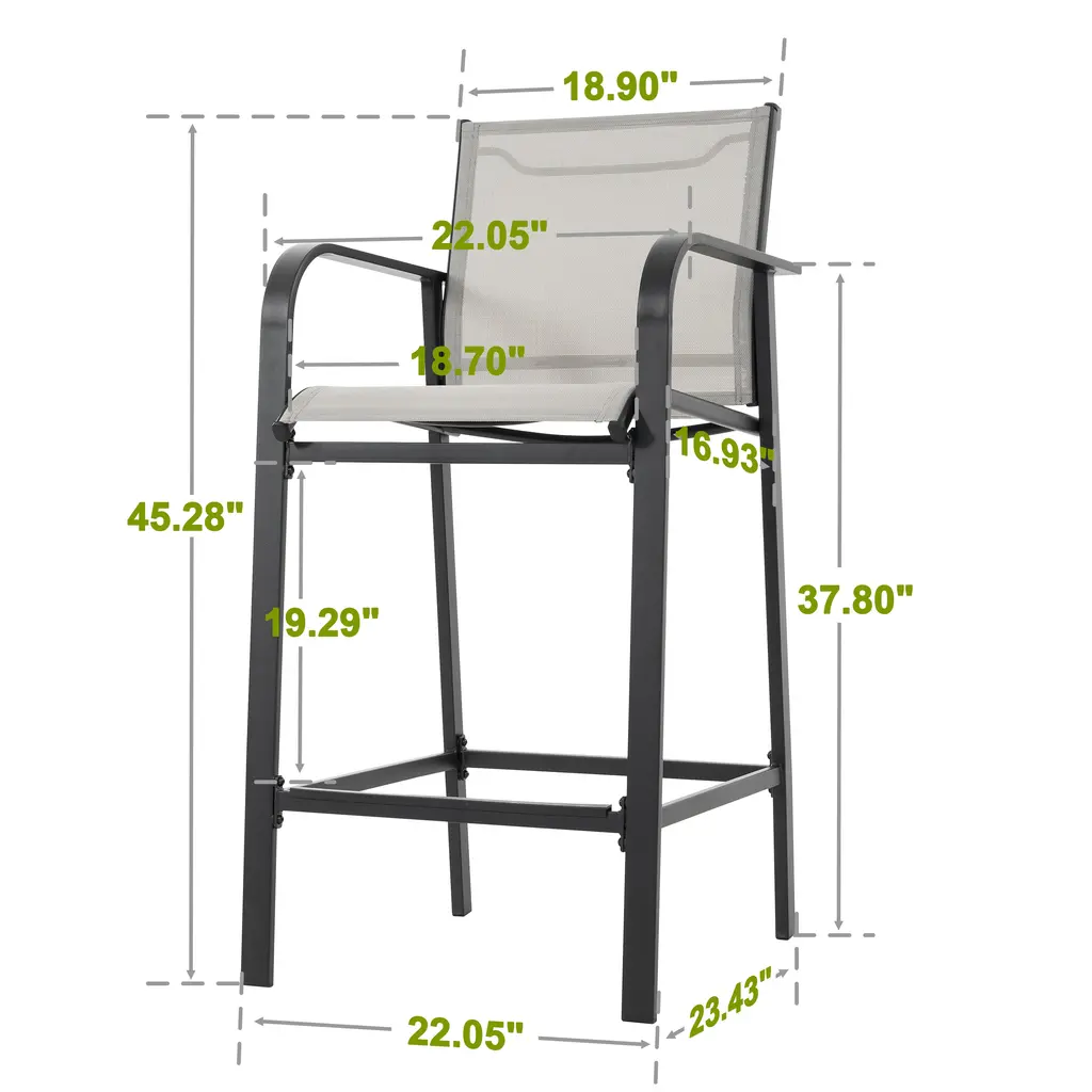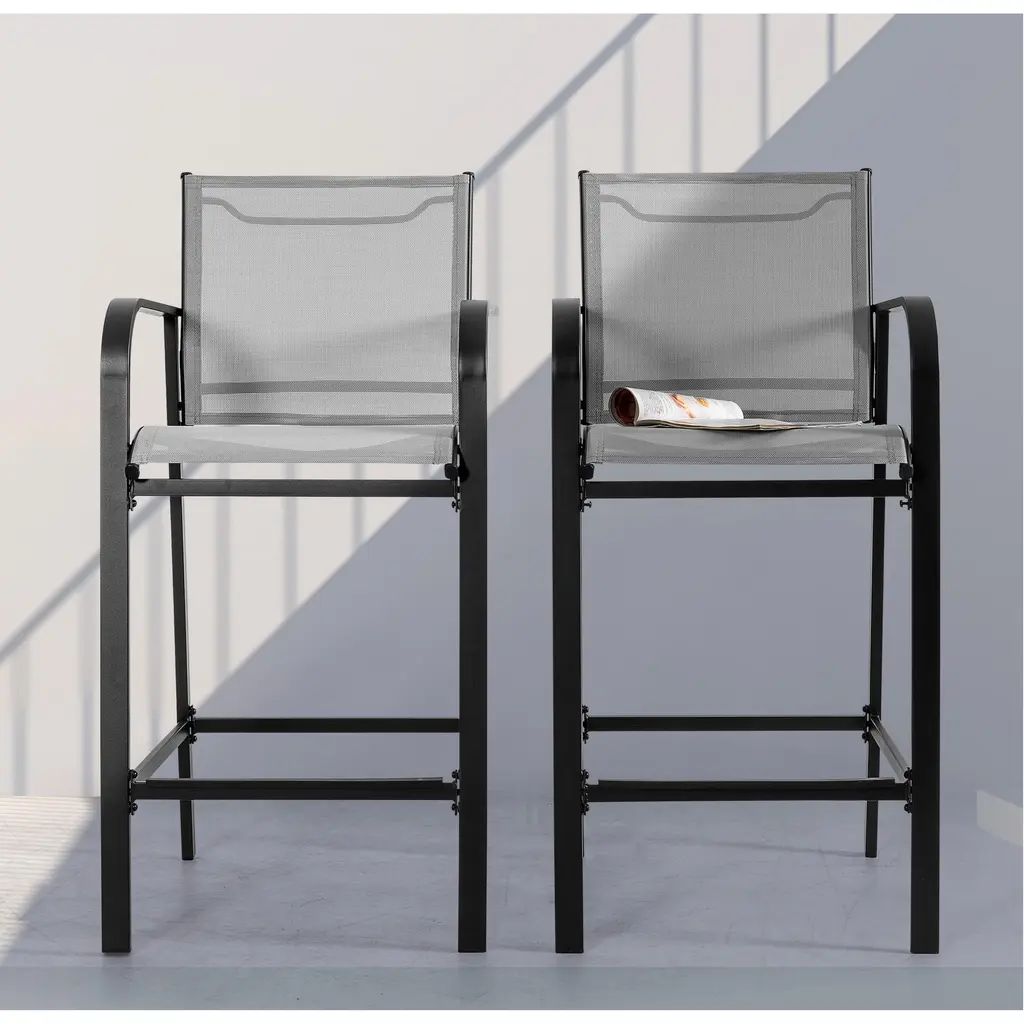Outdoor Textilene High Bar Stools With Powder-Coated Frame, Light Gray - Grey