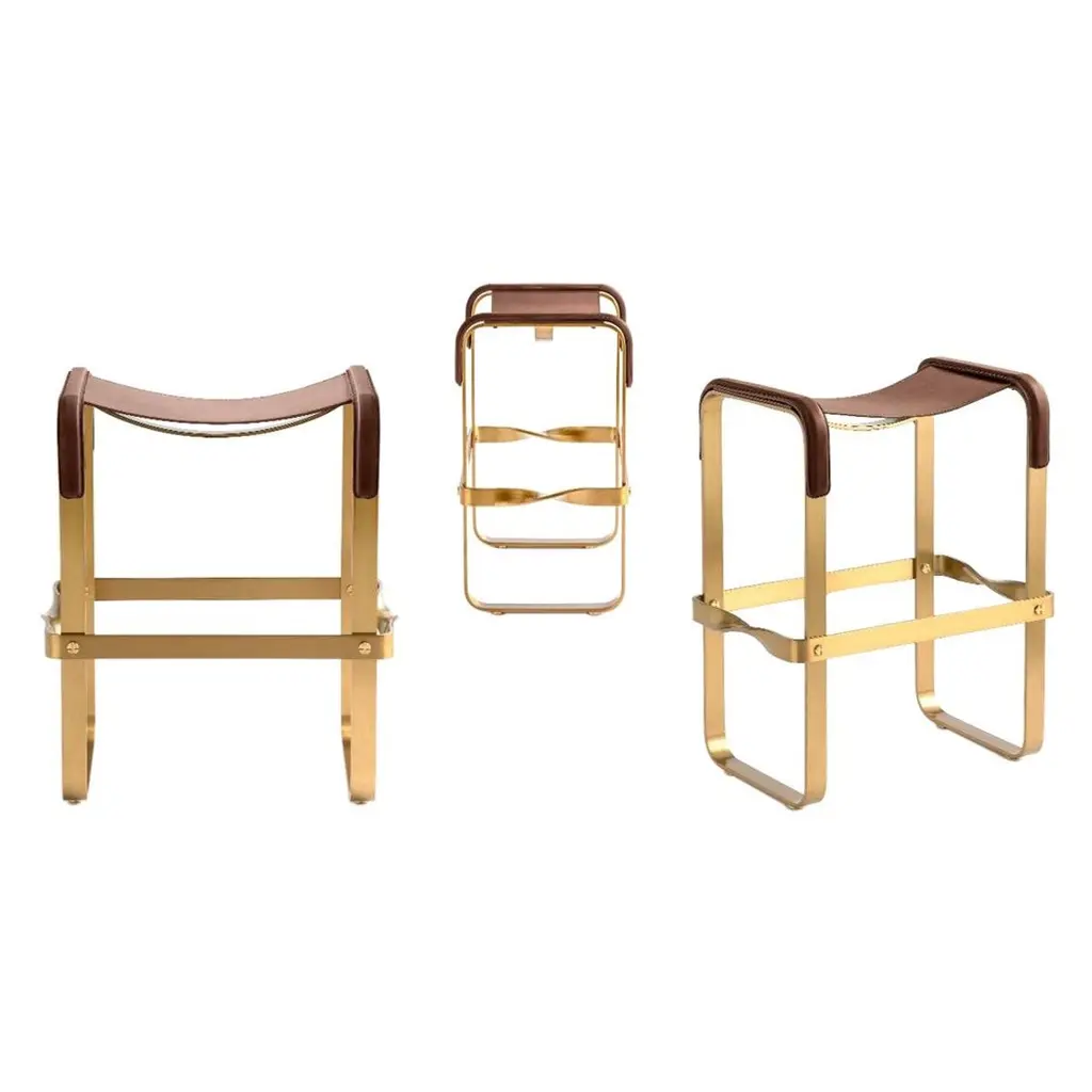 The “Repose” contemporary counter stool belongs to a collection that revisit the director chair collection, serene pieces where exclusivity and precision are shown in small details such as the hand-turned metal nuts and bolts that fix the leather surfaces, that go unnoticed at first sight.The robustness of the steel structure is combined with the delicacy of the rounded structure. The matte metal finishes evoke the passage of time and are complemented by vegetable tanned cowhide leathers that age gracefully with its use.The “Repose” collection is designed and conceived as a tribute to director’s chair or luxury safari foldable furniture. All pieces are done with cold steel rods, machined on a turning lathe, black powder coated and lacquered with a matt rubber effect. Our signature screws are made with brass turning lathed, polished, and lacquered, these are the pieces that fix the saddle leather to the metal frame.Leathers are Spanish hides vegetable tanned. We use premium saddles in five colors to adjust to your taste and interior needs. This traditional vegetable dyeing and tanning method is an organic technique that relies on natural tannings from bark or plant tissues. The use of oils and natural fats give the leather a distinctive flexibility and texture, allowing it to be molded, retain its shape and age graciously.All skins are carefully selected from food industry sub-products, with a minimum thickness of 3.5 mm / 0,02 in, using the part of the animal's shoulder, which allows for larger pieces and uniformity, even though signature wrinkle from the animal’s neck may be recognizable. The vegetable tanning is a traditional and artisan treatment, which is respectful to the environment. Even with careful selection natural marks as a result of the contact with other animals, the age, origin and characteristics of the skin, or even the season in which the tanning takes place cannot be avoided. We still believe that these factors only add authenticity and uniqueness to every piece. Our leather parts are made with double saddles, always showing the top side of the hides that presents the better quality.Customization options.With the aim of creating customized pieces, clients can select from the various leather colors to create pieces that complement their home décor. Leather colors available, black, navy, dark brown, cognac and natural tobacco, and steel color is black.Normally we use off white threats for stitches, but client can select another option, being possible to select any color to make a unique piece for the project it belongs. The finish on the edges of our leather components is sanded and hand painted. We have the option to select an alternative color if not tone on tone will be applied.Please consult in case you are interested on having a particular heat embossing stamp on the leather.Our high-end collections are made to full fill home spaces where to gather and enjoy great conversation with families and friends. Occasional one-of-a-kind furniture for exquisite homes, from cottages to exclusive resorts. Our product is understood as a sculptural piece of design, as an art object to be displayed at different house spaces as library, bar, living, foyer, bedroom, powder, meeting, grand or great room.The different finishes options make the furniture perfect combinations on diverse styles, from rustic mountain home, a small cottage, a ski lodge retreat, or industrial a minimalist look. The 'Repose' contemporary armchair is a part of our exclusive collection that reimagines the classic director chair with a serene and exquisite design. Every detail is carefully crafted, from the hand-turned metal nuts and bolts that secure the leather surfaces, to the robust yet delicate combination of steel and rounded structure. The matte metal finishes evoke a timeless appeal, complemented by vegetable-tanned cowhide leathers that age gracefully over time.Designed as a tribute to director's chairs and luxury safari foldable furniture, the 'Repose' armchair is meticulously constructed using cold steel rods, machined on a turning lathe, and finished with a black powder coating and a matt rubber effect. Our signature brass screws not only add elegance but also securely fix the saddle leather to the metal frame.We use premium Spanish hides that undergo vegetable tanning, a traditional and environmentally-friendly technique relying on natural tannings from bark or plant tissues. The use of oils and natural fats gives the leather a distinctive flexibility, texture, and longevity, allowing it to mold, retain its shape, and age gracefully. Each skin is carefully selected from food industry sub-products, ensuring a minimum thickness of 3.5 mm / 0.02 in. While some natural marks and wrinkles from the animal's neck may be noticeable, we believe they enhance the authenticity and uniqueness of every piece.Our leather parts are made with double saddles, always showcasing the top side of the hides for superior quality. We offer customization options to suit individual preferences and home décor, with a range of leather colors including black, navy, dark brown, cognac, and natural tobacco. The steel color is black, seamlessly blending with various interior styles.For stitching, we typically use off-white threads, but clients have the flexibility to select alternative colors, making each piece truly unique. The edges of our leather components are meticulously sanded and hand-painted, providing a refined finish. Additionally, we offer the option to choose an alternative color for a striking contrast if a tone-on-tone effect is not preferred.If you desire a personal touch, we offer the possibility of incorporating a particular heat embossing stamp on the leather. Our high-end collections are designed to create a gathering space for families and friends, offering one-of-a-kind furniture for exquisite homes, ranging from cottages to exclusive resorts. Each piece is a sculptural work of art, perfect for 