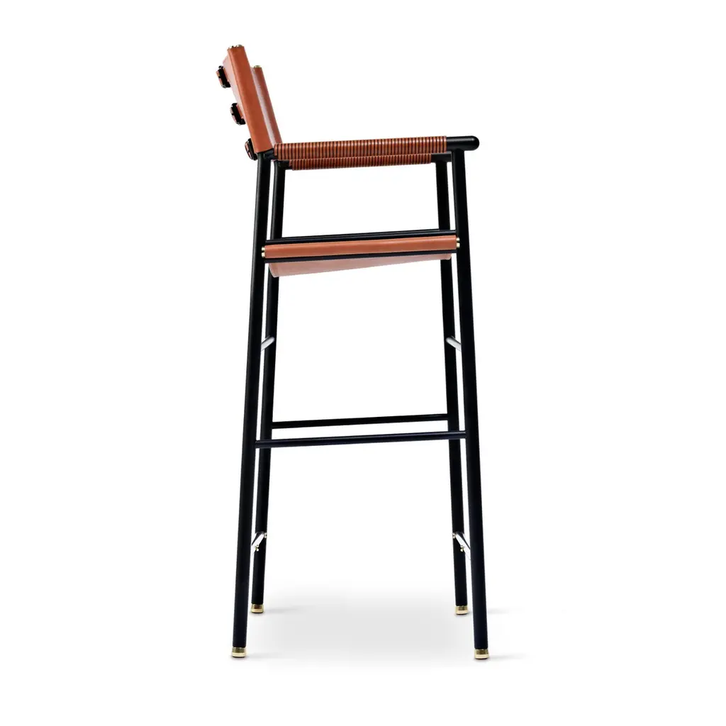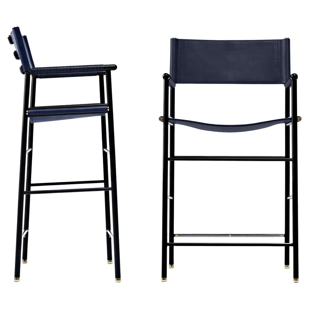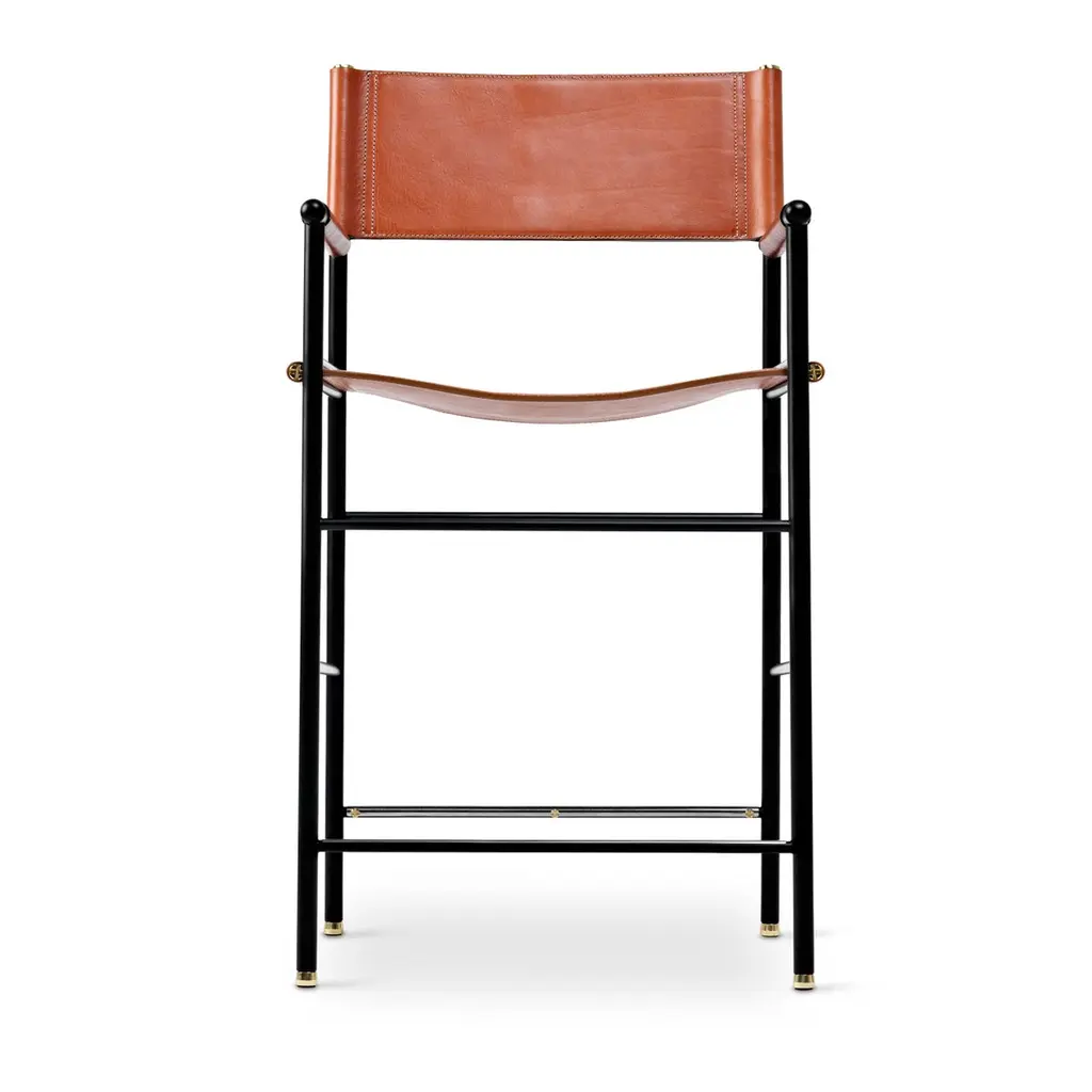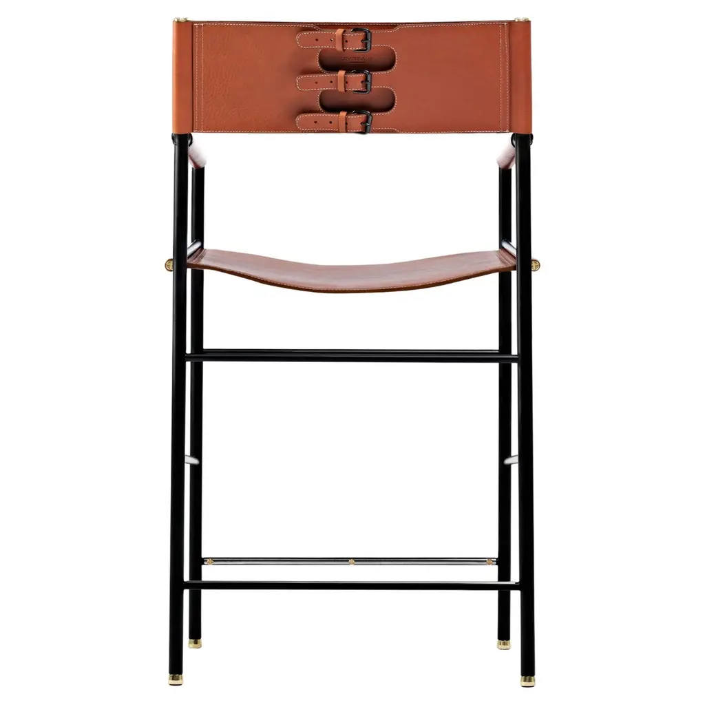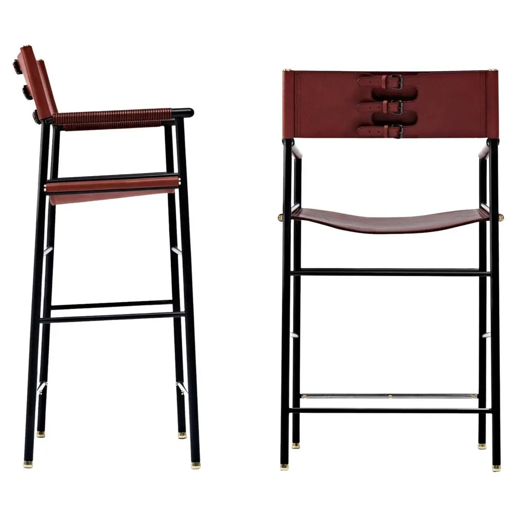 The “Repose” contemporary stool belongs to a collection that revisit the director chair collection, serene pieces where exclusivity and precision are shown in small details such as the hand-turned metal nuts and bolts that fix the leather surfaces, that go unnoticed at first sight.The robustness of the steel structure is combined with the delicacy of the rounded structure. The matte metal finishes evoke the passage of time and are complemented by vegetable tanned cowhide leathers that age gracefully with its use.The “Repose” armchair is designed and conceived as a tribute to director’s chair or luxury safari foldable furniture. All pieces are done with cold steel rods, machined on a turning lathe, black powder coated and lacquered with a matt rubber effect. Our signature screws are made with brass turning lathed, polished, and lacquered, these are the pieces that fix the saddle leather to the metal frame.Leathers are Spanish hides vegetable tanned. We use premium saddles in five colors to adjust to your taste and interior needs. This traditional vegetable dyeing and tanning method is an organic technique that relies on natural tannings from bark or plant tissues. The use of oils and natural fats give the leather a distinctive flexibility and texture, allowing it to be molded, retain its shape and age graciously.All skins are carefully selected from food industry sub-products, with a minimum thickness of 3.5 mm / 0,02 in, using the part of the animal's shoulder, which allows for larger pieces and uniformity, even though signature wrinkle from the animal’s neck may be recognizable. The vegetable tanning is a traditional and artisan treatment, which is respectful to the environment. Even with careful selection natural marks as a result of the contact with other animals, the age, origin and characteristics of the skin, or even the season in which the tanning takes place cannot be avoided. We still believe that these factors only add authenticity and uniqueness to every piece. Our leather parts are made with double saddles, always showing the top side of the hides that presents the better quality.Customization options.With the aim of creating customized pieces, clients can select from the various leather colors to create pieces that complement their home décor. Leather colors available, black, navy, dark brown, cognac and natural tobacco, and steel color is black.Normally we use off white threats for stitches, but client can select another option, being possible to select any color to make a unique piece for the project it belongs. The finish on the edges of our leather components is sanded and hand painted. We have the option to select an alternative color if not tone on tone will be applied.Please consult in case you are interested on having a particular heat embossing stamp on the leather.Our high-end collections are made to full fill home spaces where to gather and enjoy great conversation with families and friends. Occasional one-of-a-kind furniture for exquisite homes, from cottages to exclusive resorts. Our product is understood as a sculptural piece of design, as an art object to be displayed at different house spaces as library, bar, living, foyer, bedroom, powder, meeting, grand or great room.The different finishes options make the furniture perfect combinations on diverse styles, from rustic mountain home, a small cottage, a ski lodge retreat, or industrial a minimalist look. The 'Repose' contemporary armchair is a part of our exclusive collection that reimagines the classic director chair with a serene and exquisite design. Every detail is carefully crafted, from the hand-turned metal nuts and bolts that secure the leather surfaces, to the robust yet delicate combination of steel and rounded structure. The matte metal finishes evoke a timeless appeal, complemented by vegetable-tanned cowhide leathers that age gracefully over time.Designed as a tribute to director's chairs and luxury safari foldable furniture, the 'Repose' armchair is meticulously constructed using cold steel rods, machined on a turning lathe, and finished with a black powder coating and a matt rubber effect. Our signature brass screws not only add elegance but also securely fix the saddle leather to the metal frame.We use premium Spanish hides that undergo vegetable tanning, a traditional and environmentally-friendly technique relying on natural tannings from bark or plant tissues. The use of oils and natural fats gives the leather a distinctive flexibility, texture, and longevity, allowing it to mold, retain its shape, and age gracefully. Each skin is carefully selected from food industry sub-products, ensuring a minimum thickness of 3.5 mm / 0.02 in. While some natural marks and wrinkles from the animal's neck may be noticeable, we believe they enhance the authenticity and uniqueness of every piece.Our leather parts are made with double saddles, always showcasing the top side of the hides for superior quality. We offer customization options to suit individual preferences and home décor, with a range of leather colors including black, navy, dark brown, cognac, and natural tobacco. The steel color is black, seamlessly blending with various interior styles.For stitching, we typically use off-white threads, but clients have the flexibility to select alternative colors, making each piece truly unique. The edges of our leather components are meticulously sanded and hand-painted, providing a refined finish. Additionally, we offer the option to choose an alternative color for a striking contrast if a tone-on-tone effect is not preferred.If you desire a personal touch, we offer the possibility of incorporating a particular heat embossing stamp on the leather. Our high-end collections are designed to create a gathering space for families and friends, offering one-of-a-kind furniture for exquisite homes, ranging from cottages to exclusive resorts. Each piece is a sculptural work of art, perfect for various ho