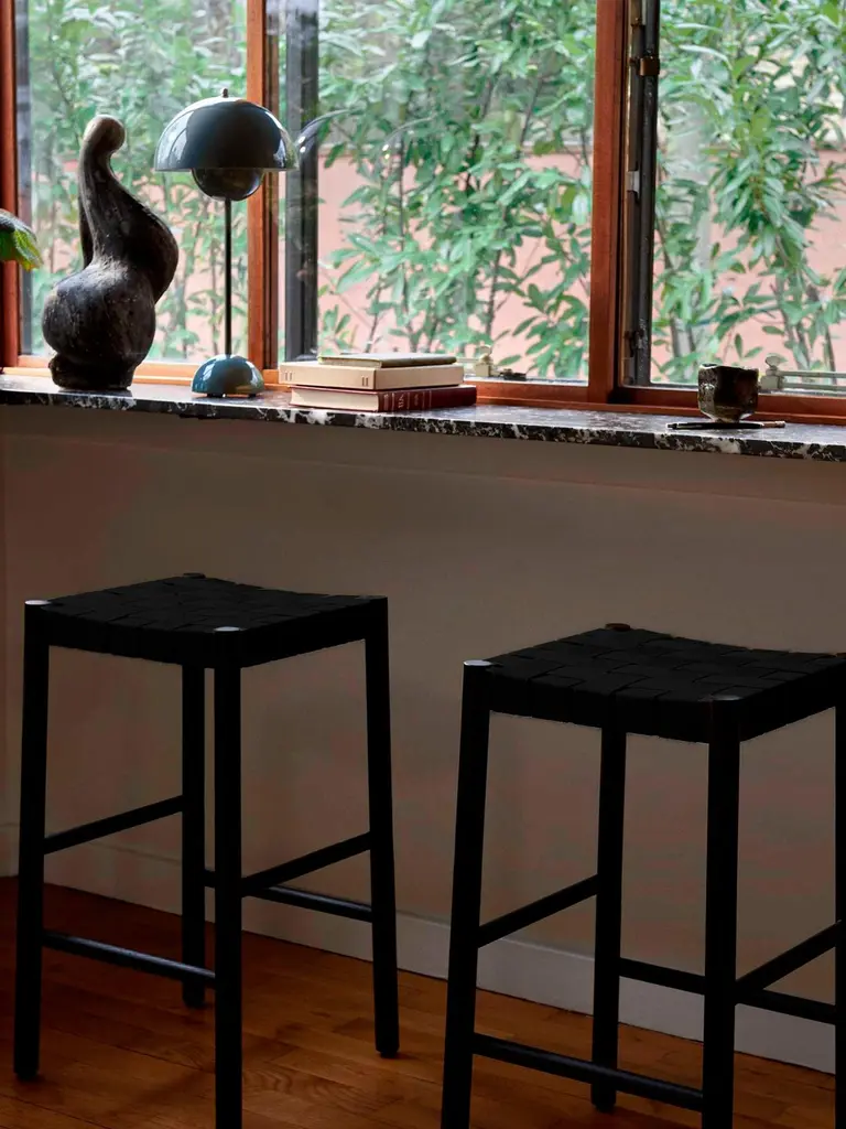 Named after the Betty Nansen theatre in Copenhagen, this stool’s sturdy frame is crafted from lacquered oak.The webbed seat – whose straps are made from natural linen fibers and woven by hand – offers a soft, cushioned base. Dimensions : H:76cm / 29.9in, W:40cm / 15.7in, D:40cm / 15.7inDesignerThau & KallioJakob Thau and Sami Kallio are fascinated by materials and methods. They share a deep affinity for wood and hand craftsmanship, with a firm focus on the components that make up any given design. Together they are revitalizing the Nordic narrative by applying classic techniques in new expressions.Jakob Thau was born in Sweden and raised in Denmark. Trained as a cabinetmaker, he received his master’s degree from the Royal Danish Academy of Fine Arts, School of Design. Concentrating on the timeless, Thau draws on a selection of traditional production techniques, exploring known and new materials in his quest to create designs that everyone can relate to, live with and love. Finnish-born Sami Kallio grew up in Sweden where he was awarded a master’s degree in design from the Gothenburg School of Design and Crafts. Also trained as a cabinetmaker, he fuses his in-depth understanding of wood and highly adept skills as an artisan with modern methods of manufacturing.