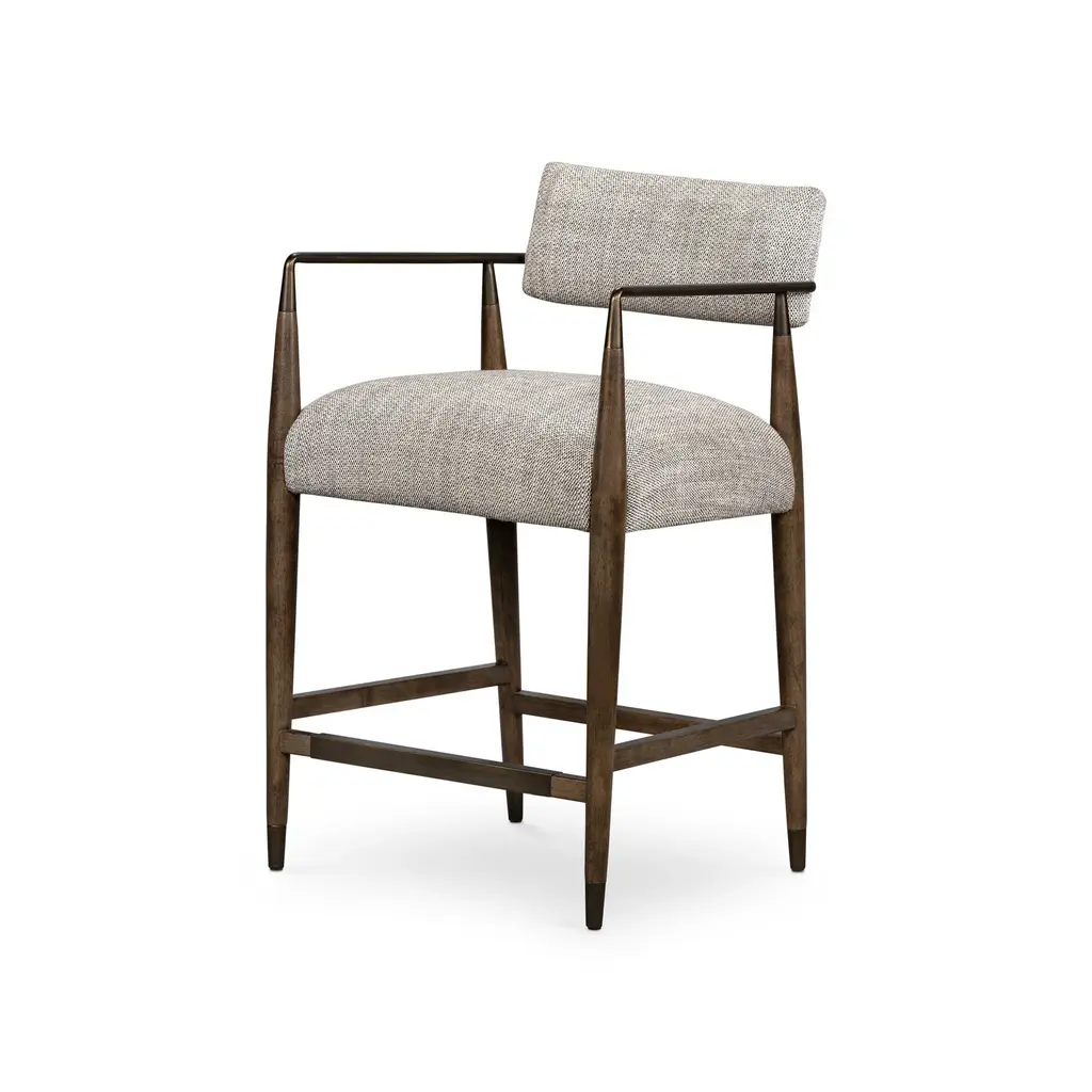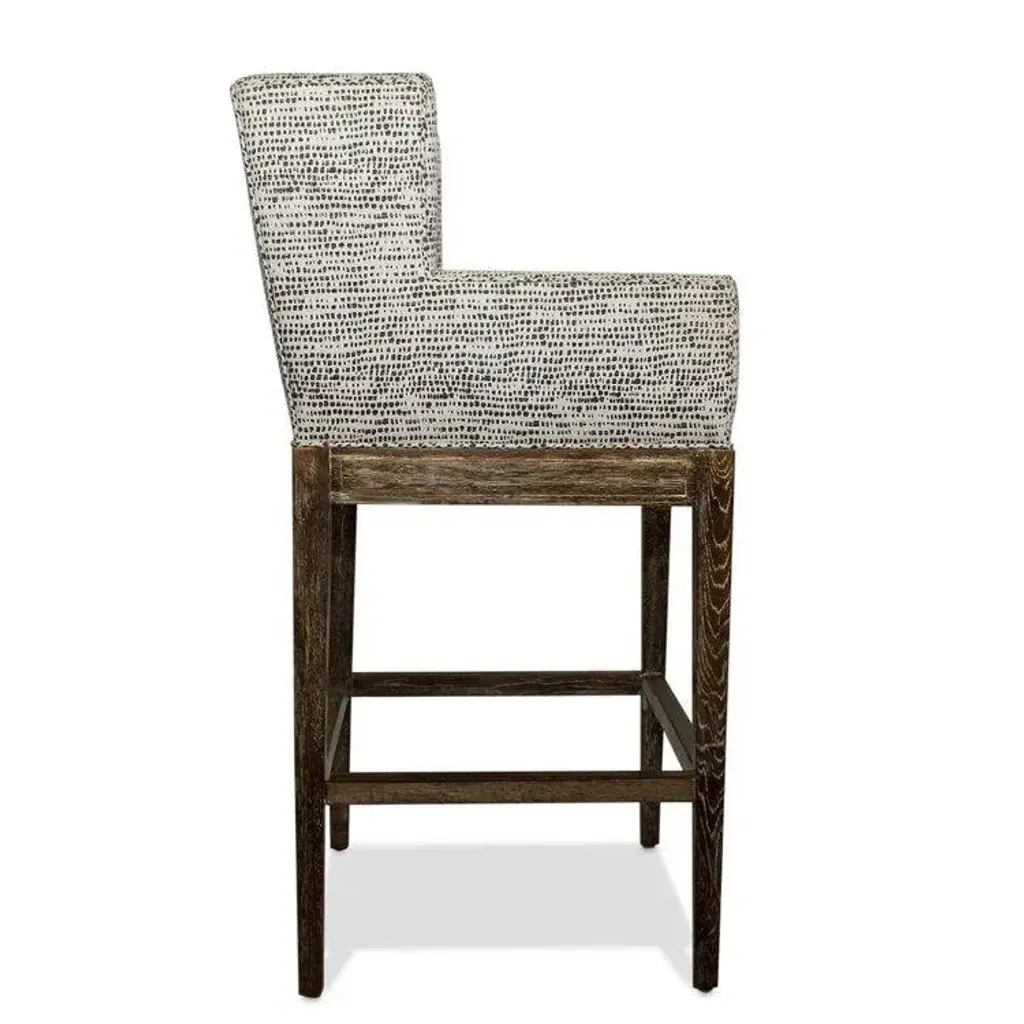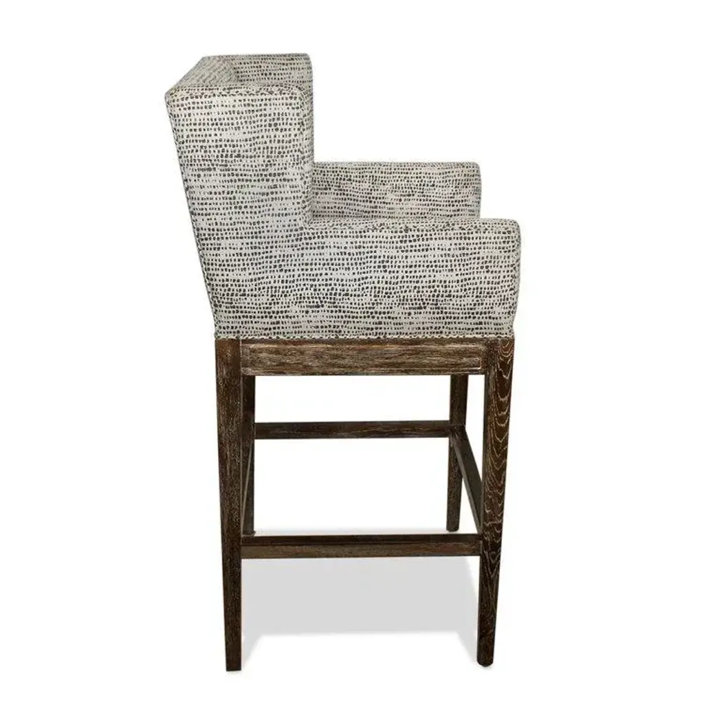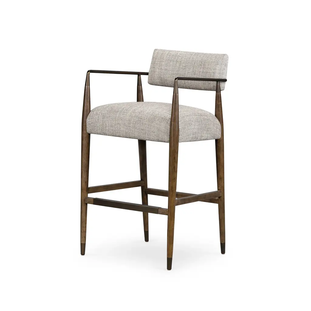 Tapered legs – a signature of midcentury design – complement these stool's strikingly angular silhouette. A wooden frame supports the tailored seat and back, providing visual contrast and adding warmth. Dimensions: 24x23x44, Seat Height 30"
