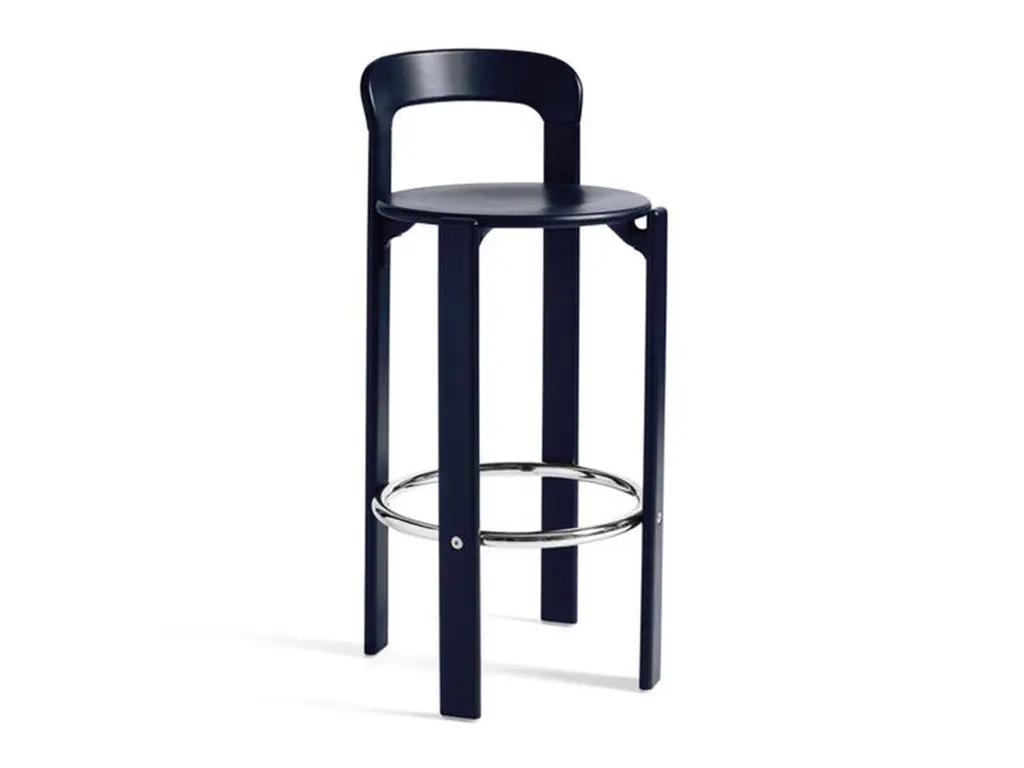 Based on the original Rey Collection designed by Swiss designer Bruno Rey in 1971, HAY has teamed up with Dietiker to present the Rey Bar Stool. It retains the functionality and resilience of the classic designs and has been modified in new dimensions to accommodate contemporary lifestyle requirements. Its uncluttered yet distinct design languagemakes it suitable for using in a wide variety of domestic, public or corporate settings, from living rooms and halls, to cafés and receptions.Rey bar stoolWidth 45 cm/ 17.72” - Depth 49,5 cm/ 19.5” - Height 97 cm /38.2” - Seat Height 75 cm/ 29.53” - Seat Depth 44 cm/ 17.32”Shell: Deep blue Water-based lacquered Moulded beech veneerFrame: Deep blue Water-based lacquered Solid beechFootrest: Chromed SteelGlider: Standard glidersDesignerBruno Rey was born in 1933 Brugg, Switzerland. After an apprenticeship as a cabinetmaker, he studied at the Zurich School of Applied Arts, where he attended classes with the pioneering designer Willy Guhl. He opened his own studio in 1968, working on an innovative chair design that was mass produced in 1971 by Dietiker in Stein am Rhein. 3300 as the chair was originally called, later became known as Rey, the most successful Swiss chair of all time. HAY has collaborated with Dietiker to present the Rey Collection by Bruno Rey, comprising the Rey Chair, Rey Stool, Rey Bar Stool, Rey Table and Rey Coffee Table.