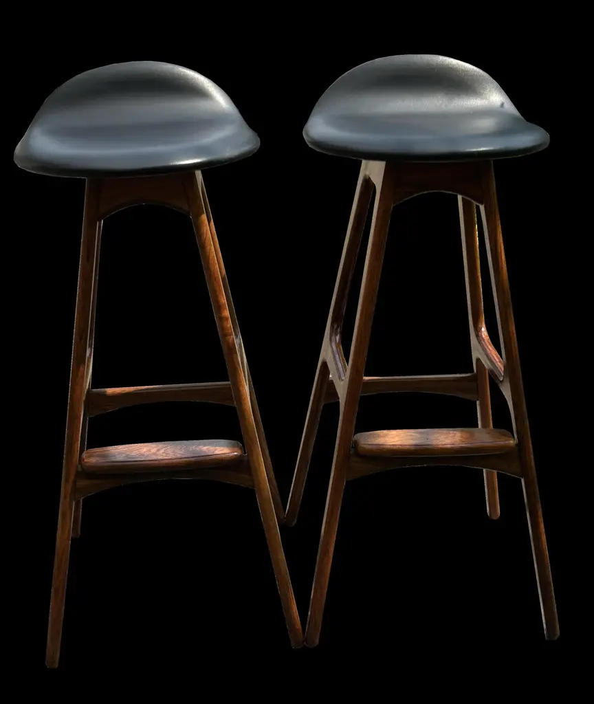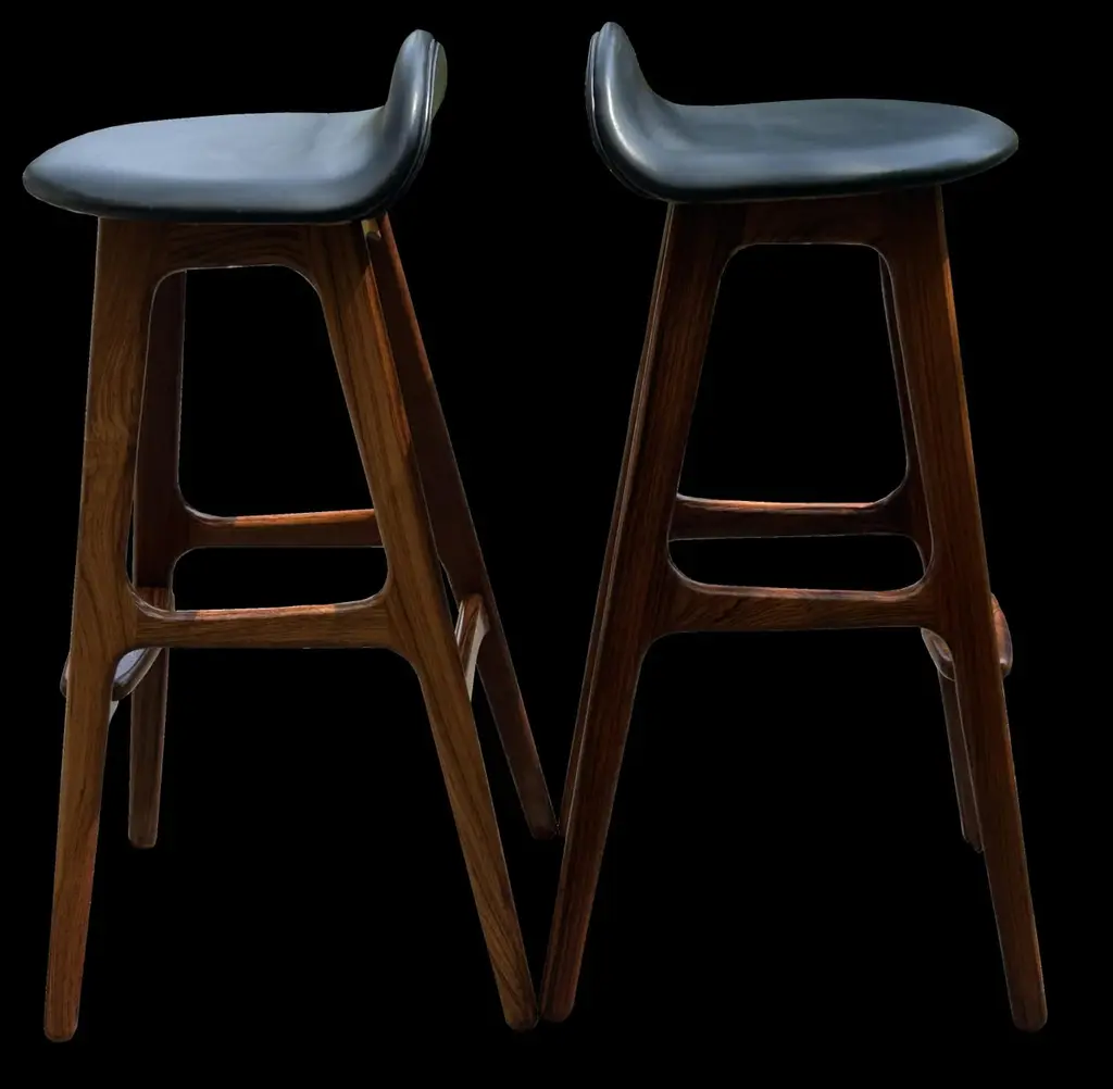 Pair Of Solid Santos Rosewood Bar Stools By Erik Buck For O D Mobler