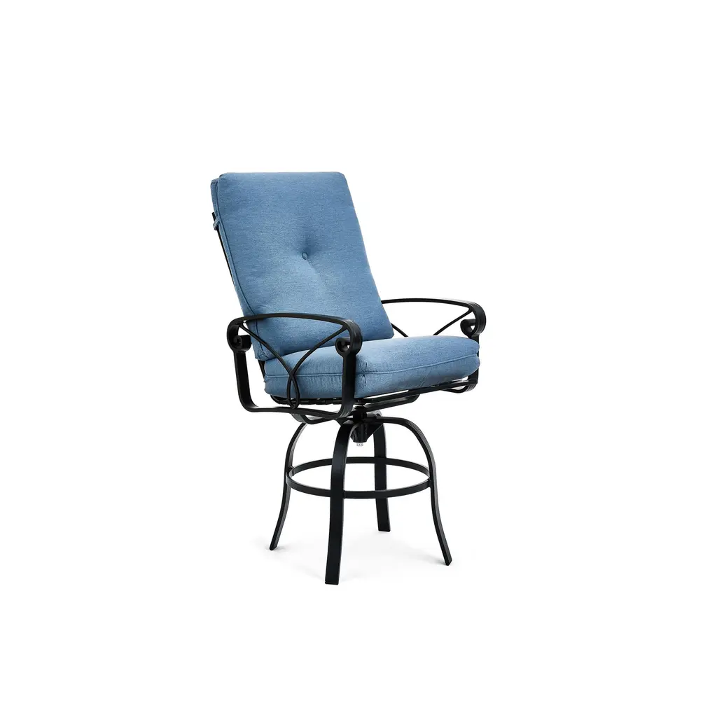 Palazzo Cushion High Back Swivel Bar Stool - Black Night/ Spectrum Denim