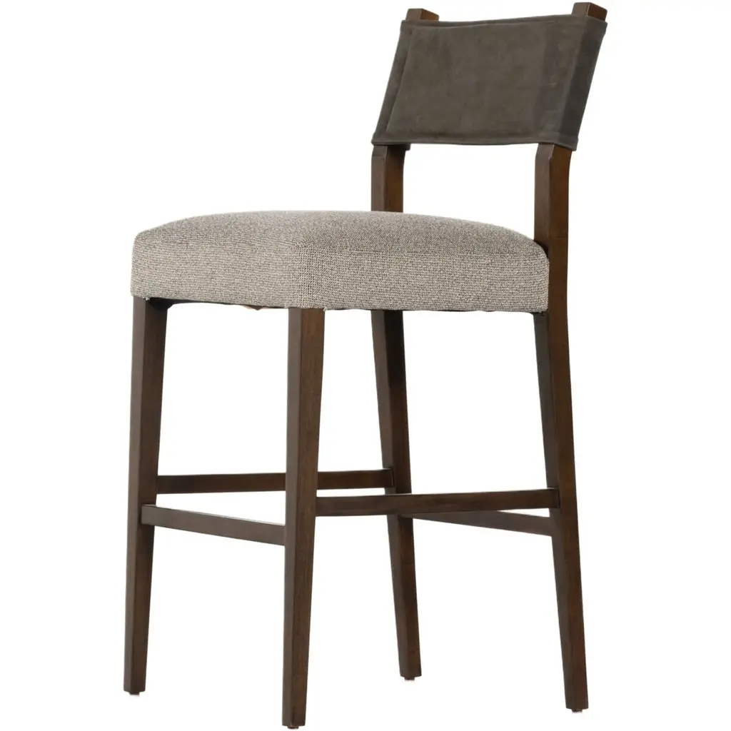 Mixed materials at their finest. The Parker Bar Stool features beautifully crafted parawood frames with squared seating upholstered in high-performance fabric. The back is elegantly finished with lightly waxed top-grain leather, making this modern-minded armchair a perfect fit for any setting. Performance fabrics are specially designed to withstand spills, stains, high traffic, and wear, ensuring long-term comfort and unmatched durability.