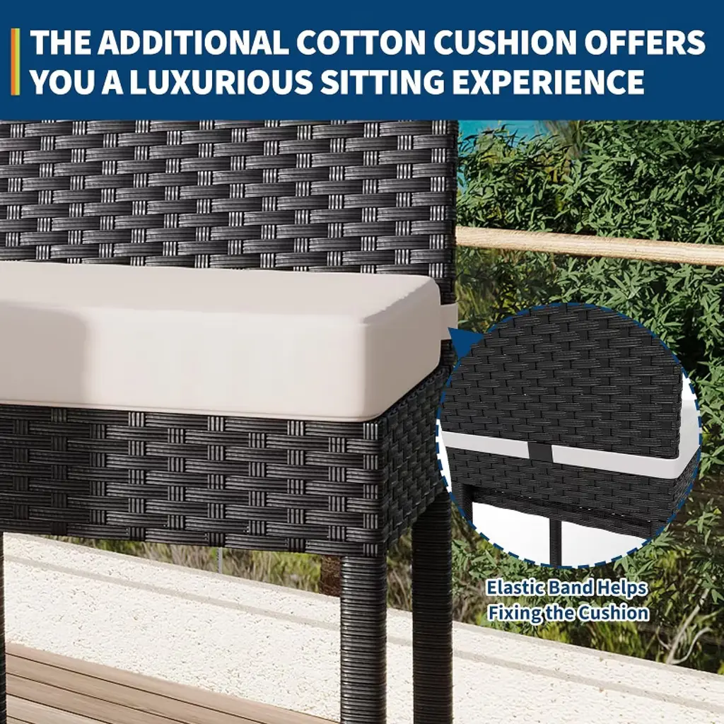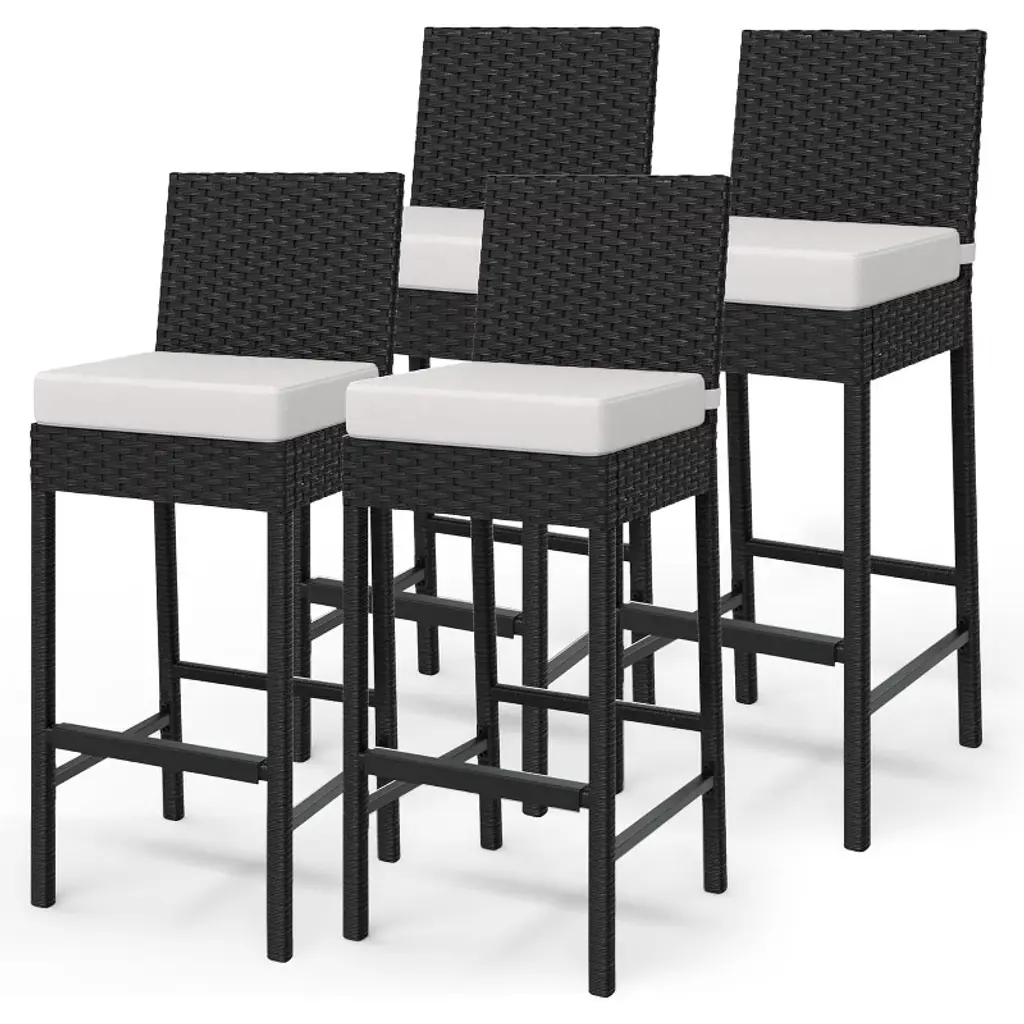 Patio Wicker Barstools With Cushions, Outdoor Wicker Bar Stools Set Of 2/ 4, Outdoor Rattan Bar Height Stool Set Armless For Backyard, Poolside