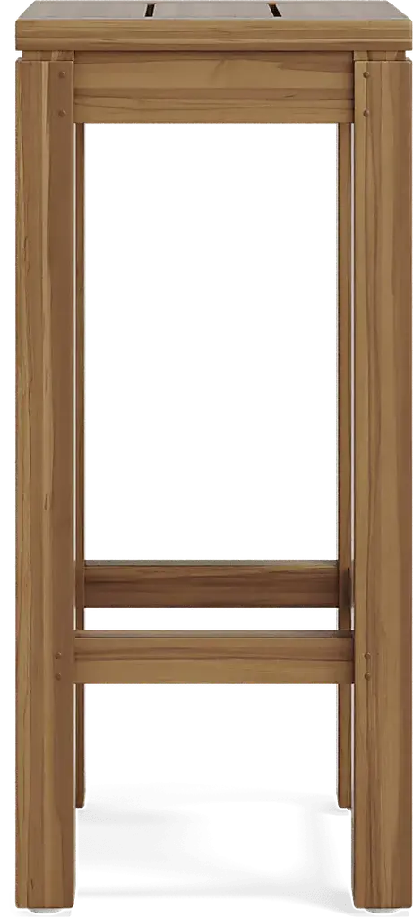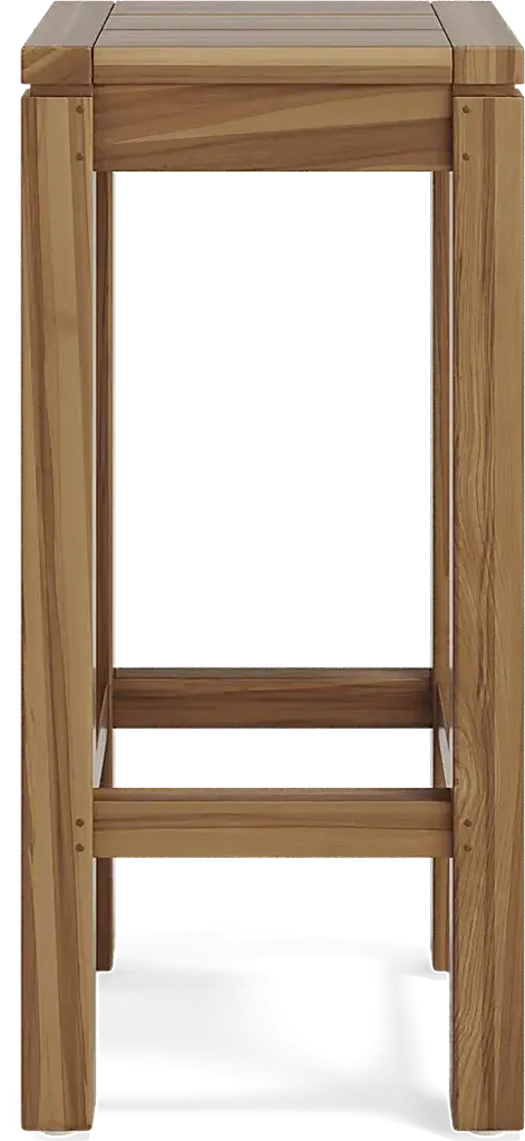Casual style and incredibly durable teak construction make the Patmos barstool a fantastic outdoor seating option. The backless stool has a plank style seat, supportive footrest and sturdy legs.