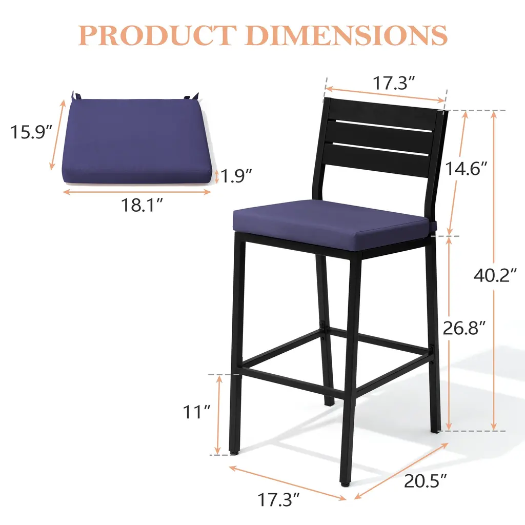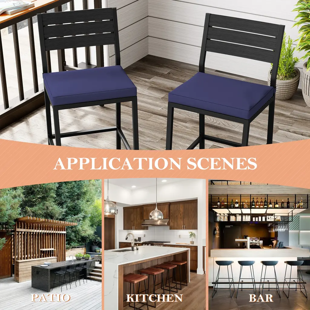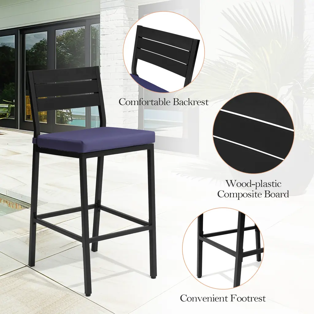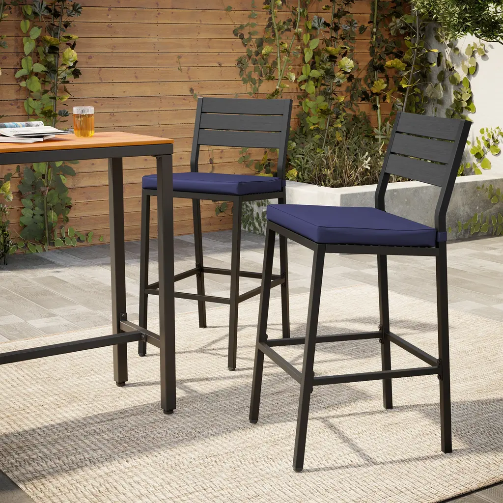 Pellebant Outdoor 2 Or 4Pcs Barstools With Cushion - 15.9 In D X 17.3 In W X 40.2 In H - Navy Blue - 2Pc