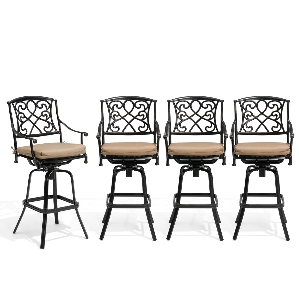Pellebant Patio Aluminum Swivel Bar Stool With Sunbrella Cushion - Beige-4Pc