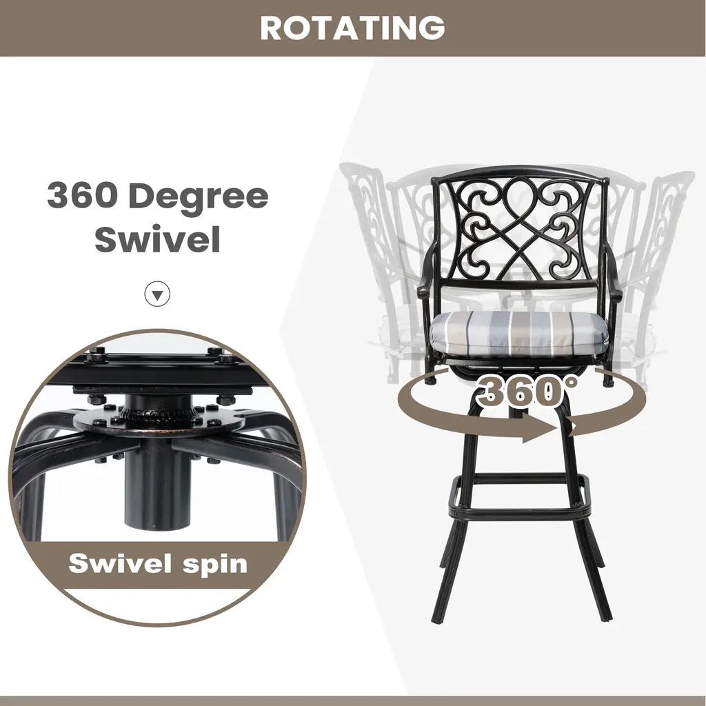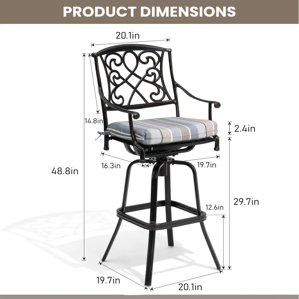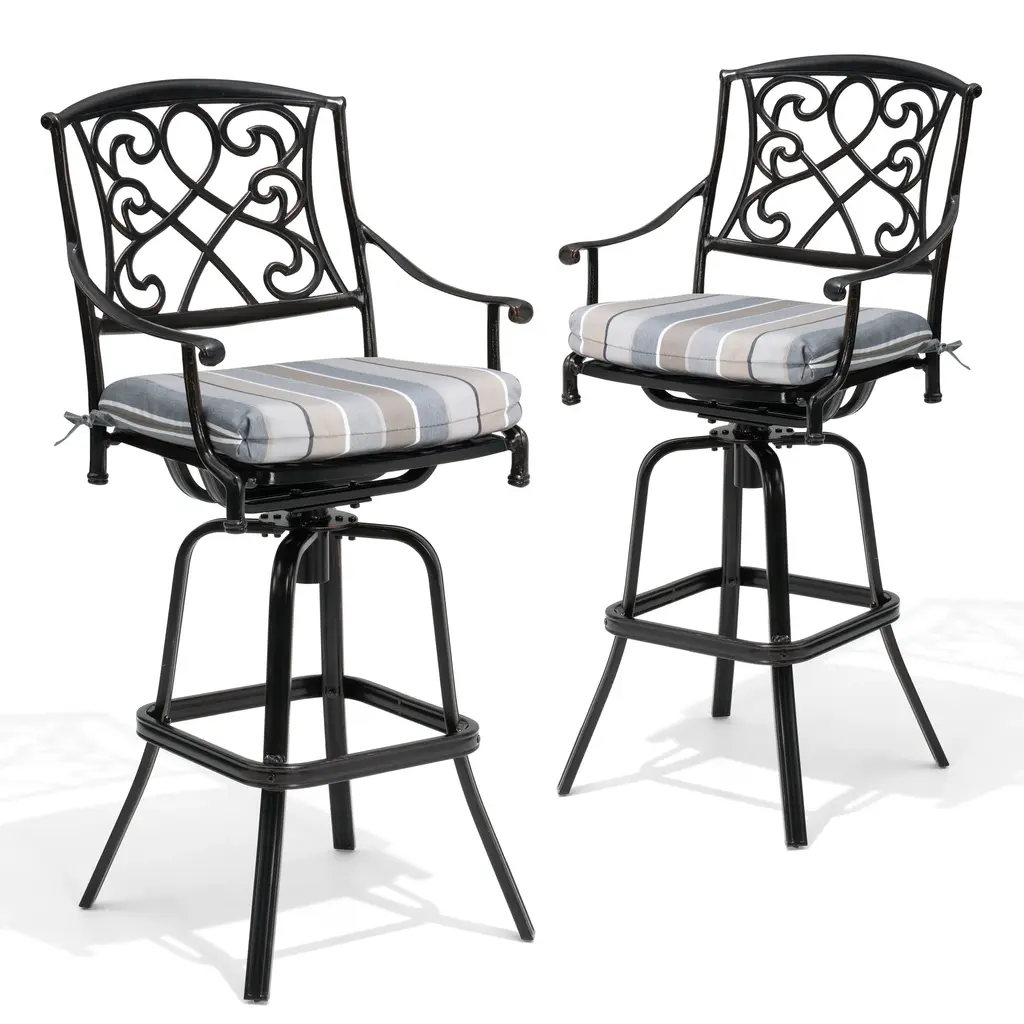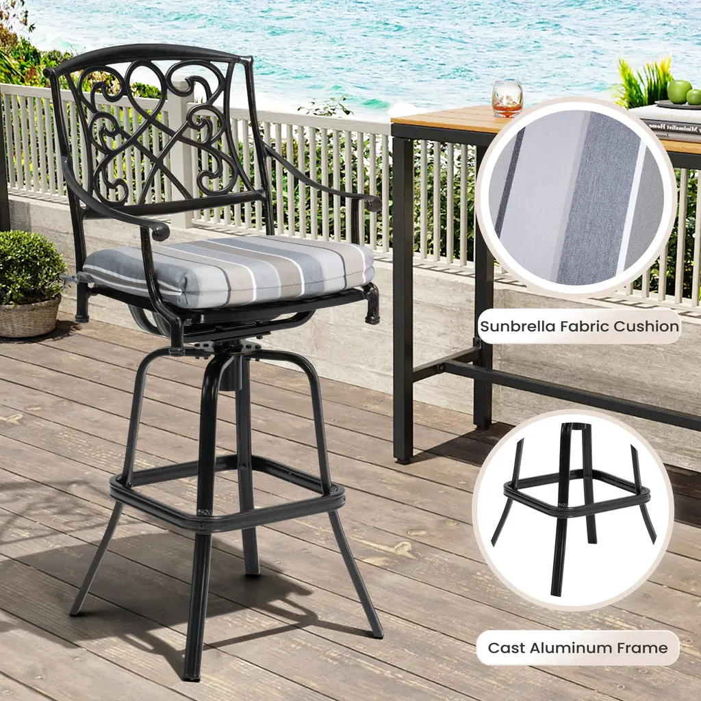 Pellebant Patio Aluminum Swivel Bar Stool With Sunbrella Cushion - Milanochar - 2Pc