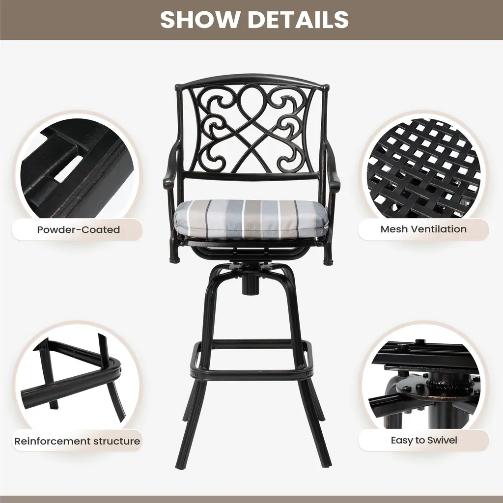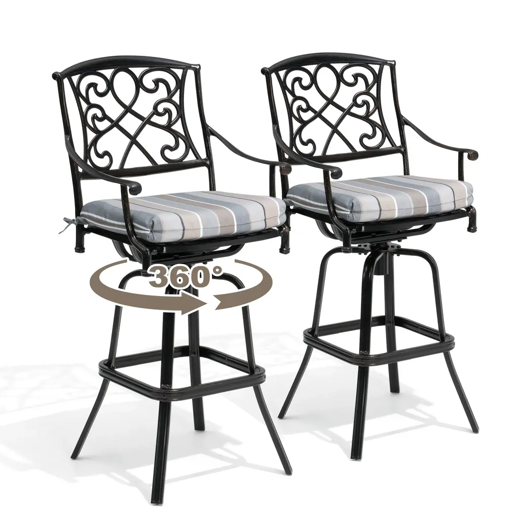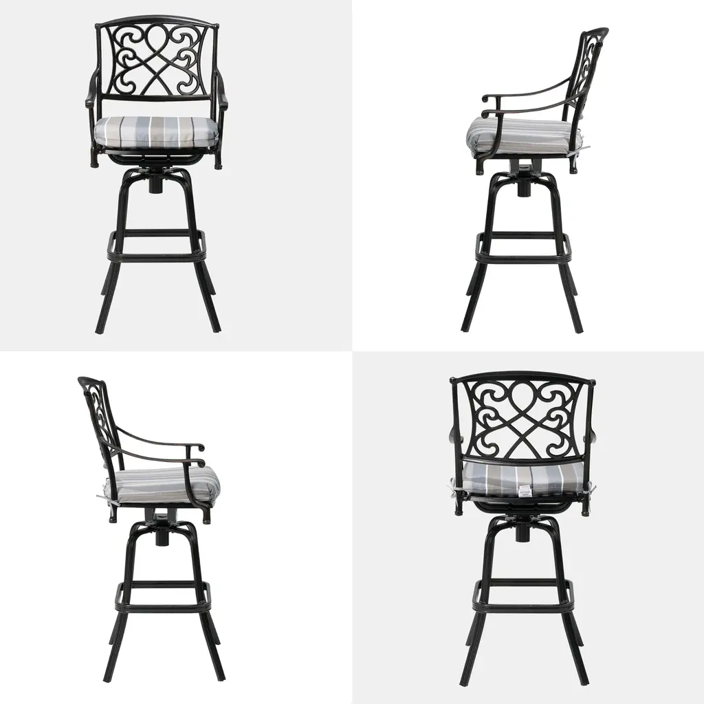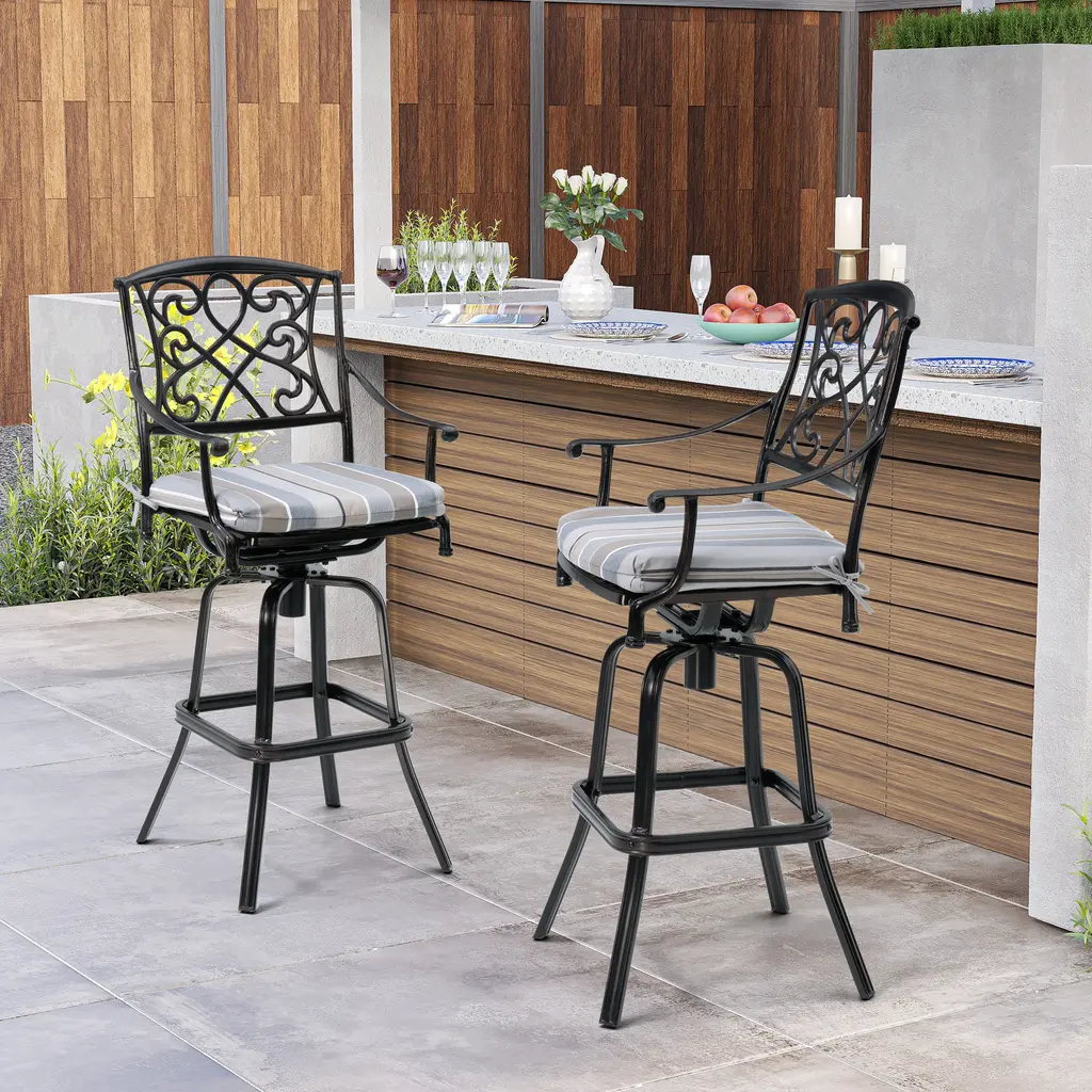 Pellebant Patio Aluminum Swivel Bar Stool With Sunbrella Cushion - Milanochar - 2Pc