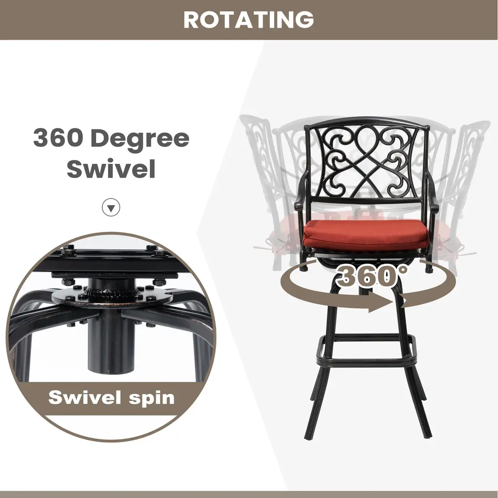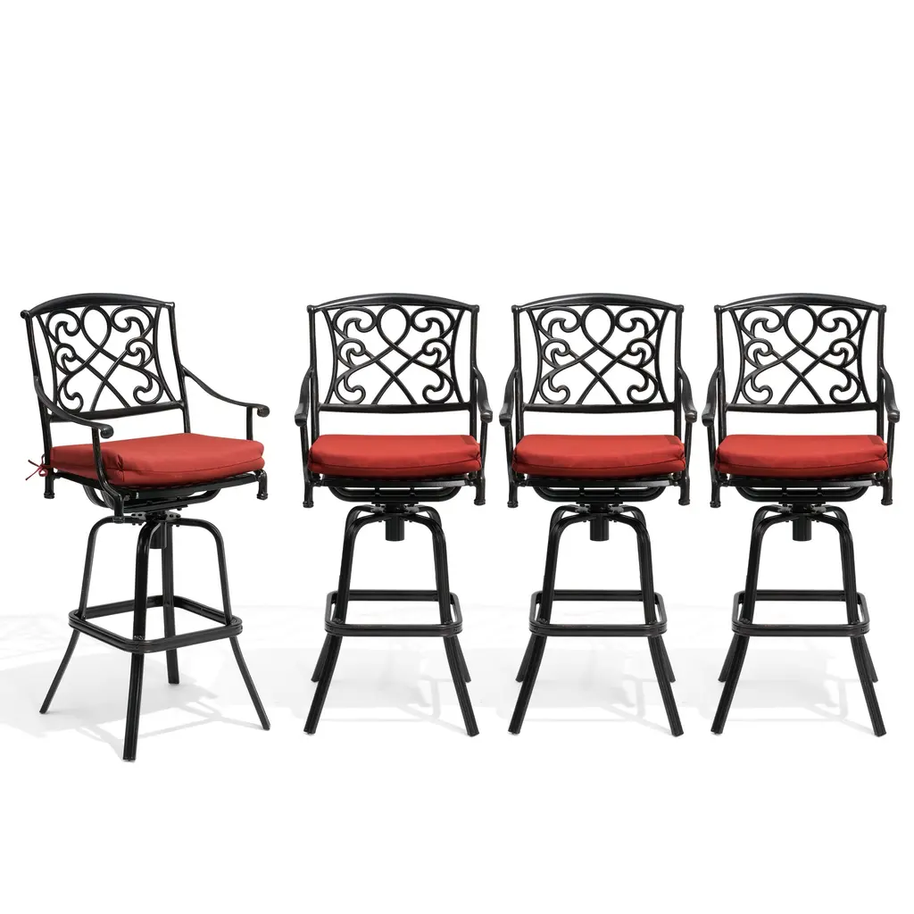 Pellebant Patio Aluminum Swivel Bar Stool With Sunbrella Cushion - Red-4Pc