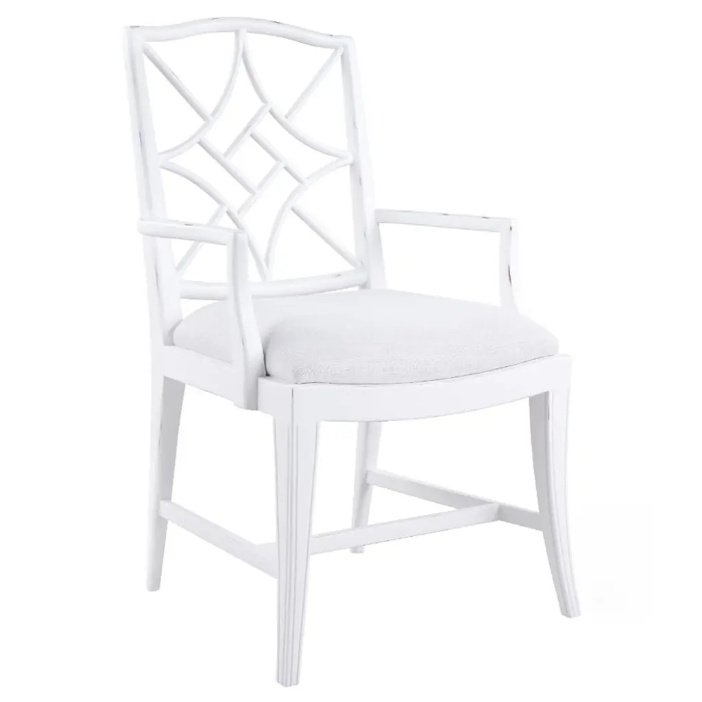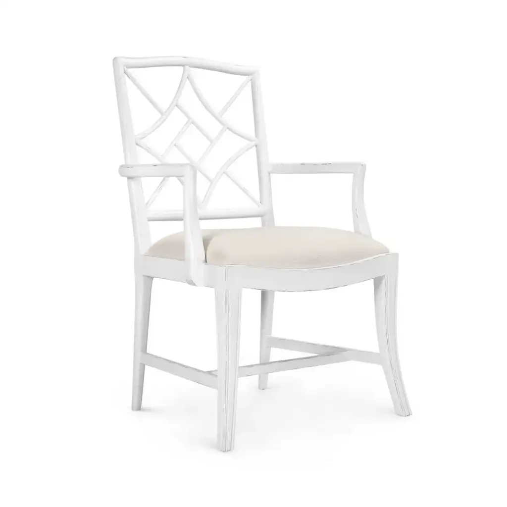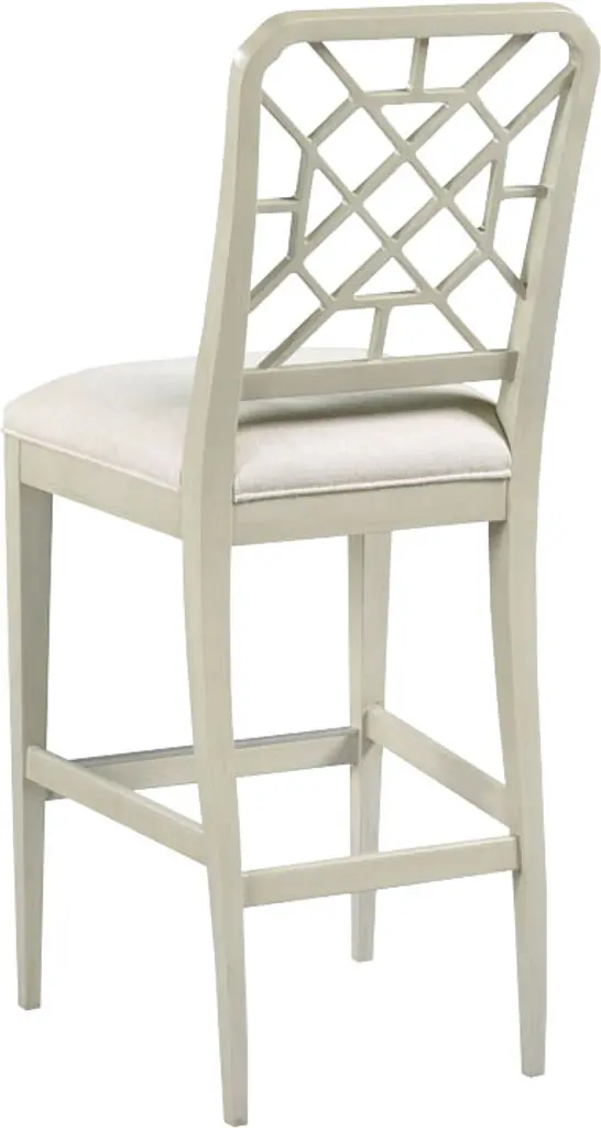 The fretwork back, the tapered legs, and the silver kickplate atop the footrest give this barstool its timeless elegance. The generously cushioned seat is upholstered in stain-resistant linen, making the stool ideal for households with kids or pets.