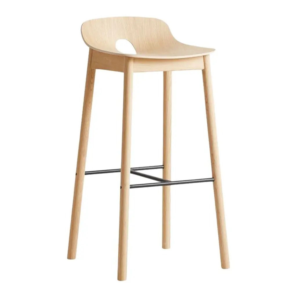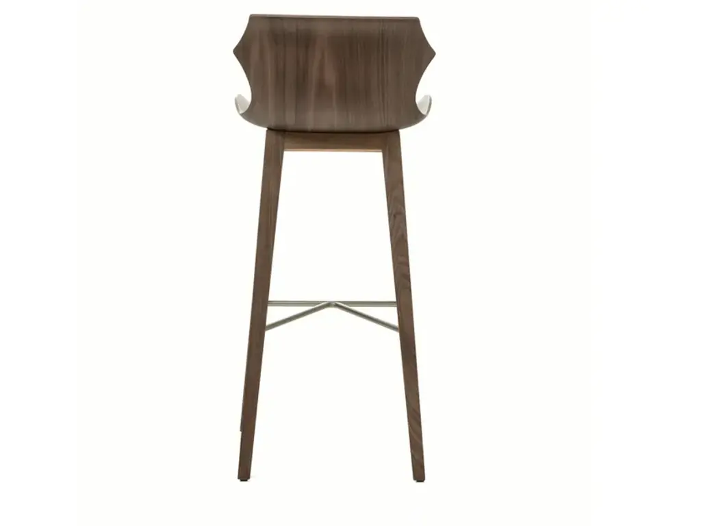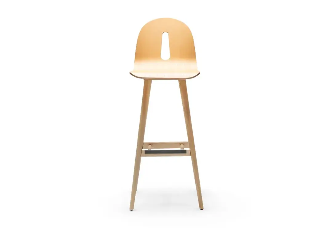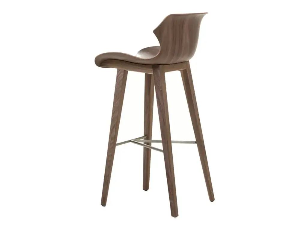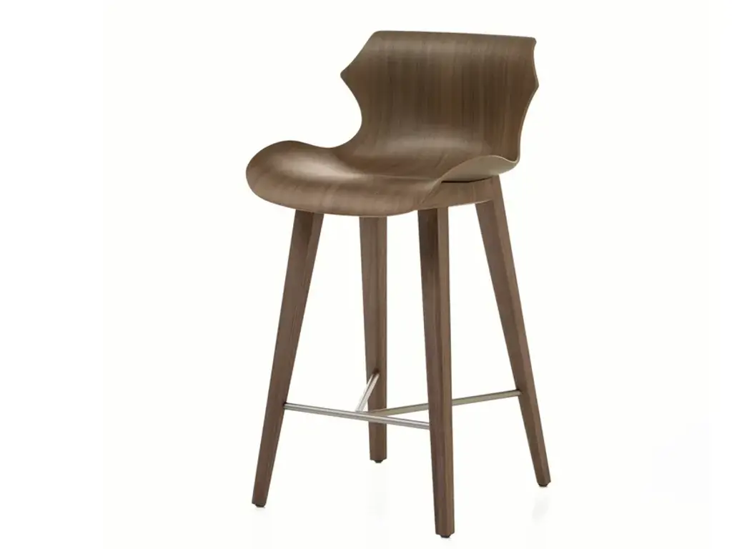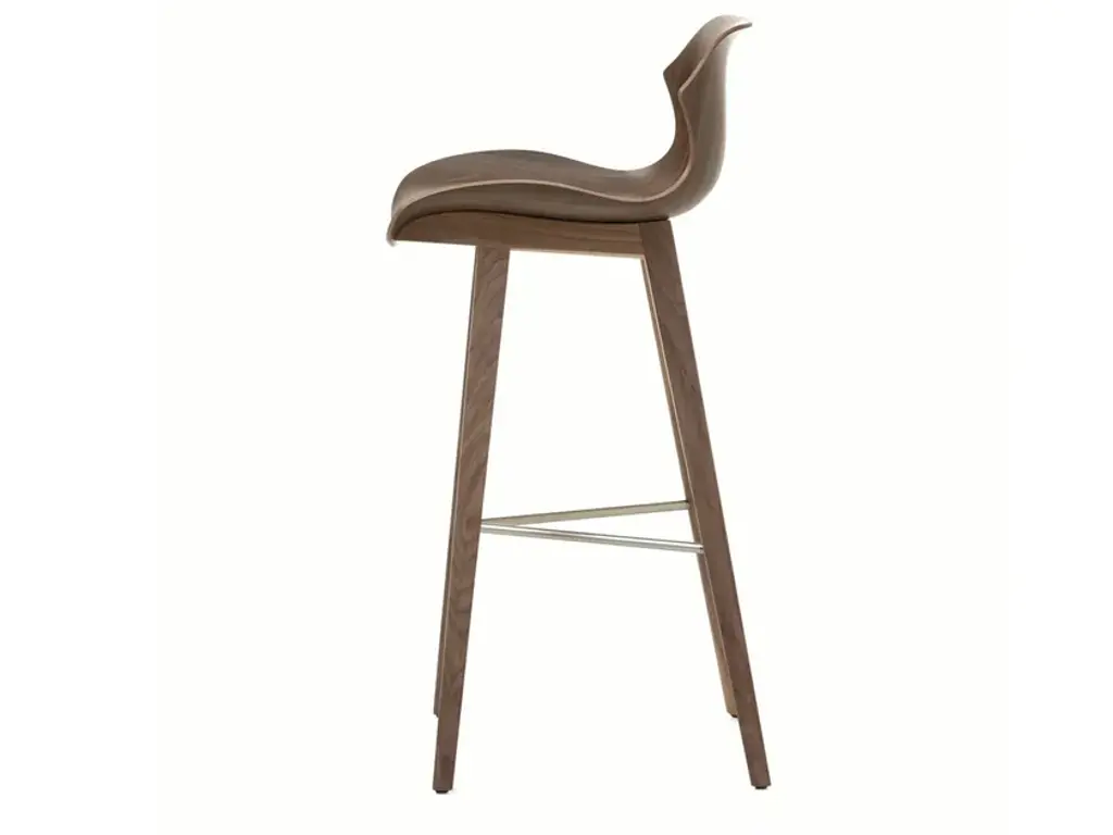 The Petal Stool is an all wood stool consisting of a 3D molded wood veneer shell with a carved, solid wood base. Materials: Shell in 3D White Oak or Walnut veneer. Base in carved solid White Oak or Walnut. Footrest in solid stainless steel rod.The BassamFellows Petal chair is the most advanced 3D molded wood veneer chair ever put into commercial production. It takes some of its inspiration from Saarinen’s Tulip chair, and also offers a dialogue with the history of the Eames experiments. The Petal chair is state of the art and environmentally friendly, but the industrial nature of the process behind it, and its economic use of materials, makes for a democratic price point. It sits neatly alongside other bent plywood chairs in terms of function and aesthetic, but has a notably more expressive form. The super-shaped wood mimics the unfolding of flower petals, creating a comfortable ergonomic form. The back is wider at its top to provide support, while rolled waterfalls of shaped wood soften the edges. Nature frequently offers the perfect mood board for comfort in design. Petal’s appeal is accentuated by the visual grain of the wood, which resembles the fine detail on a flower – the lines emanating outwards in the direction of a bloom. It’s fitting that the Petal shell is pressed at Davidson Plyforms in Grand Rapids, MI in the USA –the same company that has been pressing the Eames’ molded plywood chairs for decades. It draws a line back to the 1940s, but also represents a significant development for 21st century design. 20 years ago, CNC carving was in its infancy. The ergonomic and organic BassamFellows Tractor stool – which debuted in Milan in 2003 – was only made possible through use of that technology. Today, it is standard. The Petal is similarly ergonomic and organic-looking, but pushes the boundaries of what’s possible with molding: despite advances in 3D tech, the curvature of the rump of the shell, the waterfall edges and the shape of the arms are all extraordinarily difficult to achieve. But as the Eames’ experiments in the 1940s, technology exists to be developed more than it does to curb ambition. It is constantly being shaped.