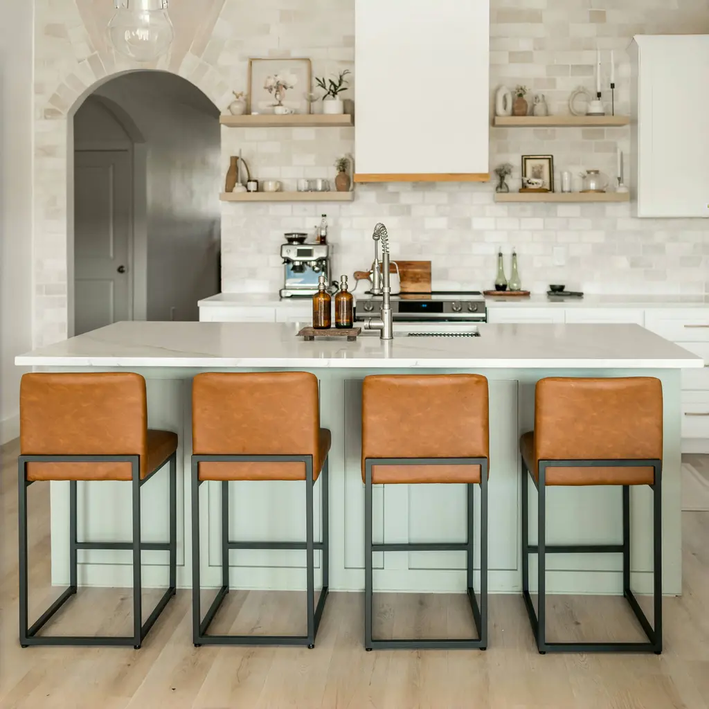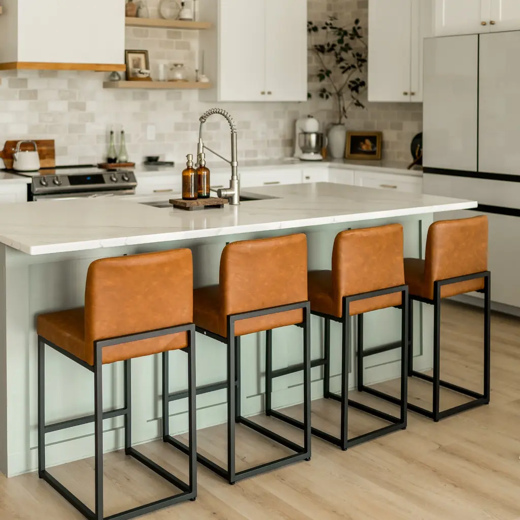 Add a modern touch to your kitchen or dining space with this PHI VILLA counter-height bar stool. Featuring soft PU leather upholstery, a gently curved back, and a sturdy metal frame, it offers both style and comfort. The water-resistant surface and ergonomic design make it ideal for everyday use, from casual meals to relaxing moments.