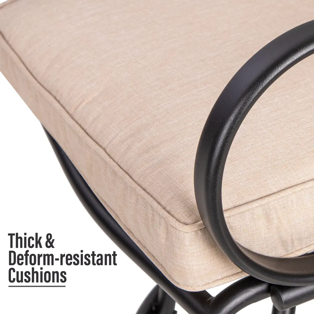 4" thick seat cushion & back cushion provide super comfortable feelings, compared to other chairs on our website. High-quality polyester cushion covers are removable & washable.
