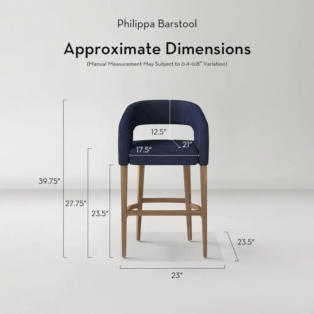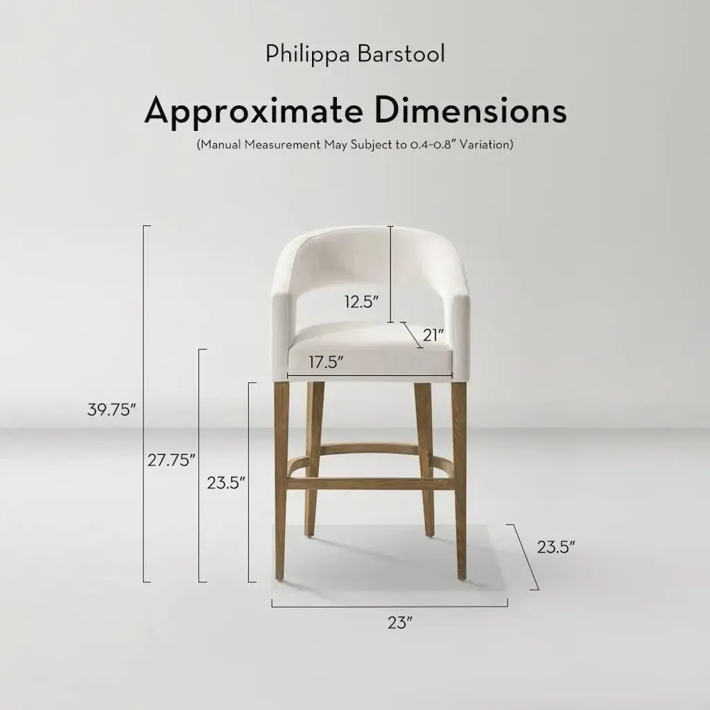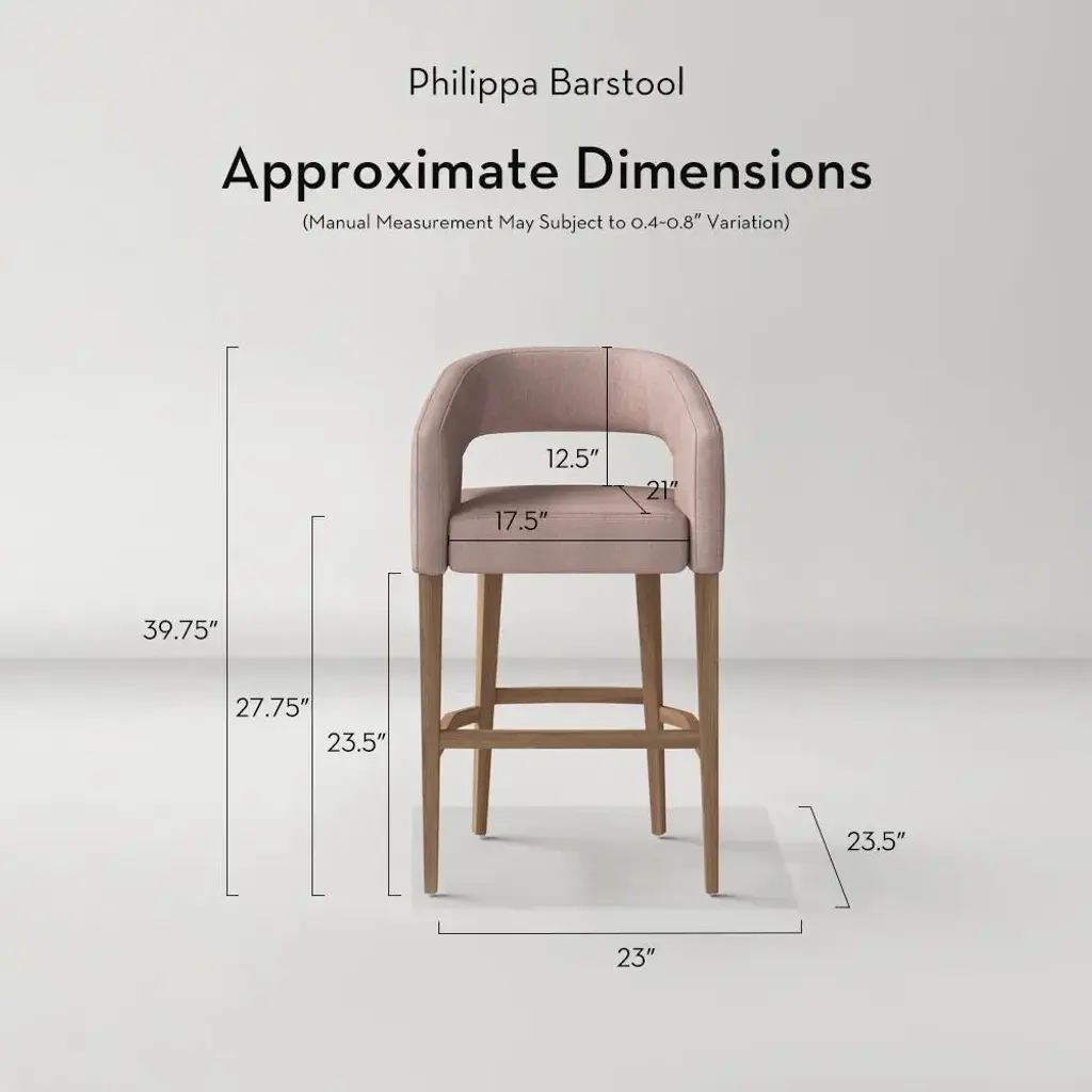 Transform your bar area with the Philippa Barstool, a sophisticated mix of luxury and function. Upholstered in sumptuous fabric and constructed with a kiln-dried rubberwood frame, this stool is as inviting as it is stylish. High-density foam seating and sleek design make it an effortless addition to any contemporary space.ZG ExclusiveCusiom Orders: Custom furniture is manufaciured especially for you, which is why we do not accept cancellations, exchanges, or return.