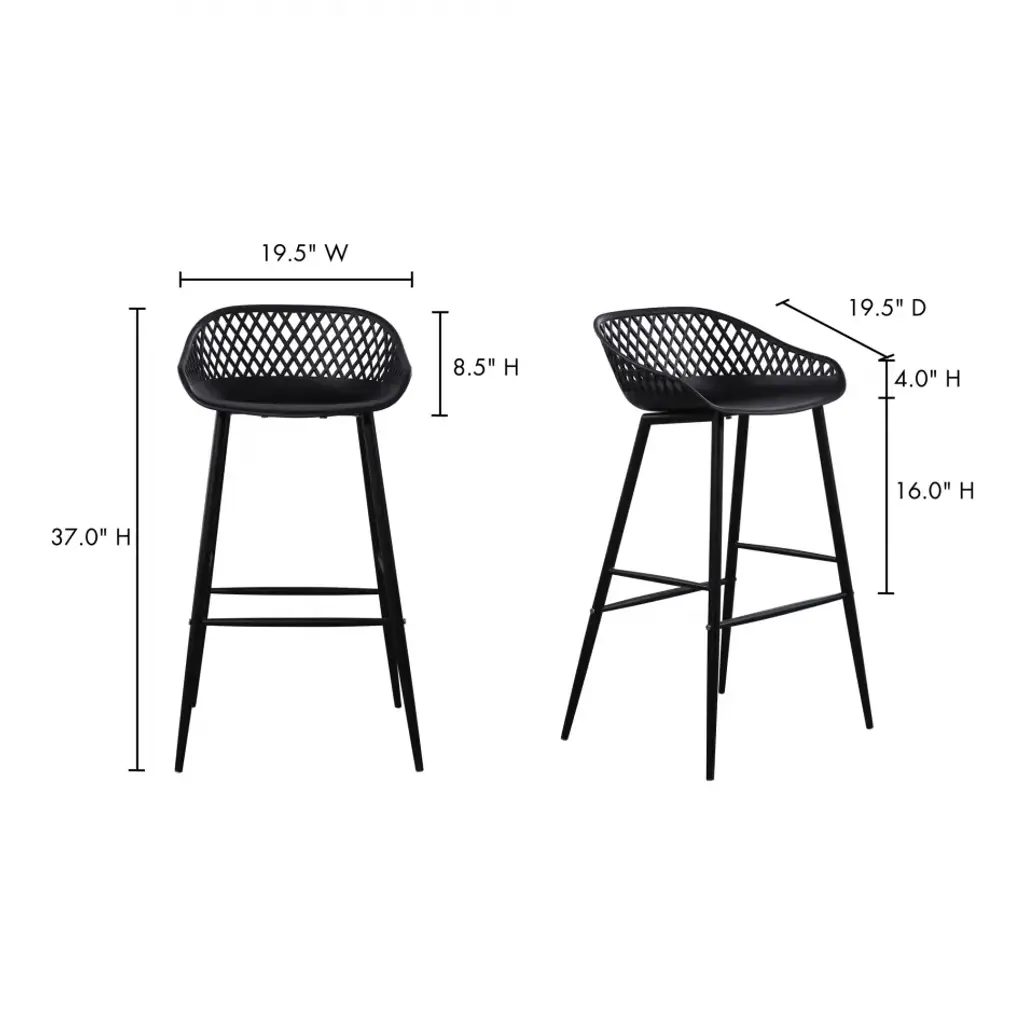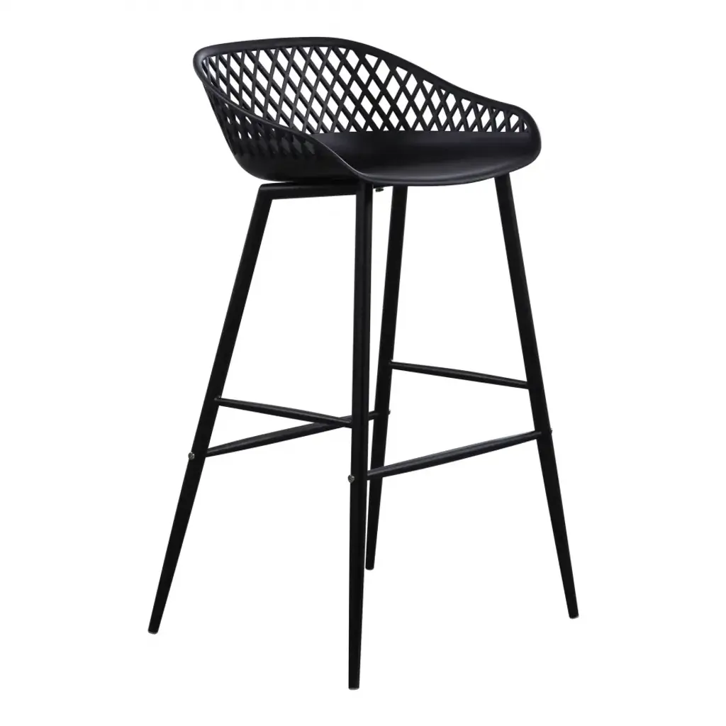 Take a seat in the stylish and comfortable Piazza Bar Stool. Made with a durable polypropylene, this chair comes in several colors that will be sure to complement your outdoor design with its whicker backing and powder coated metal legs. The perfect addition to any table or as extra seating for guests.