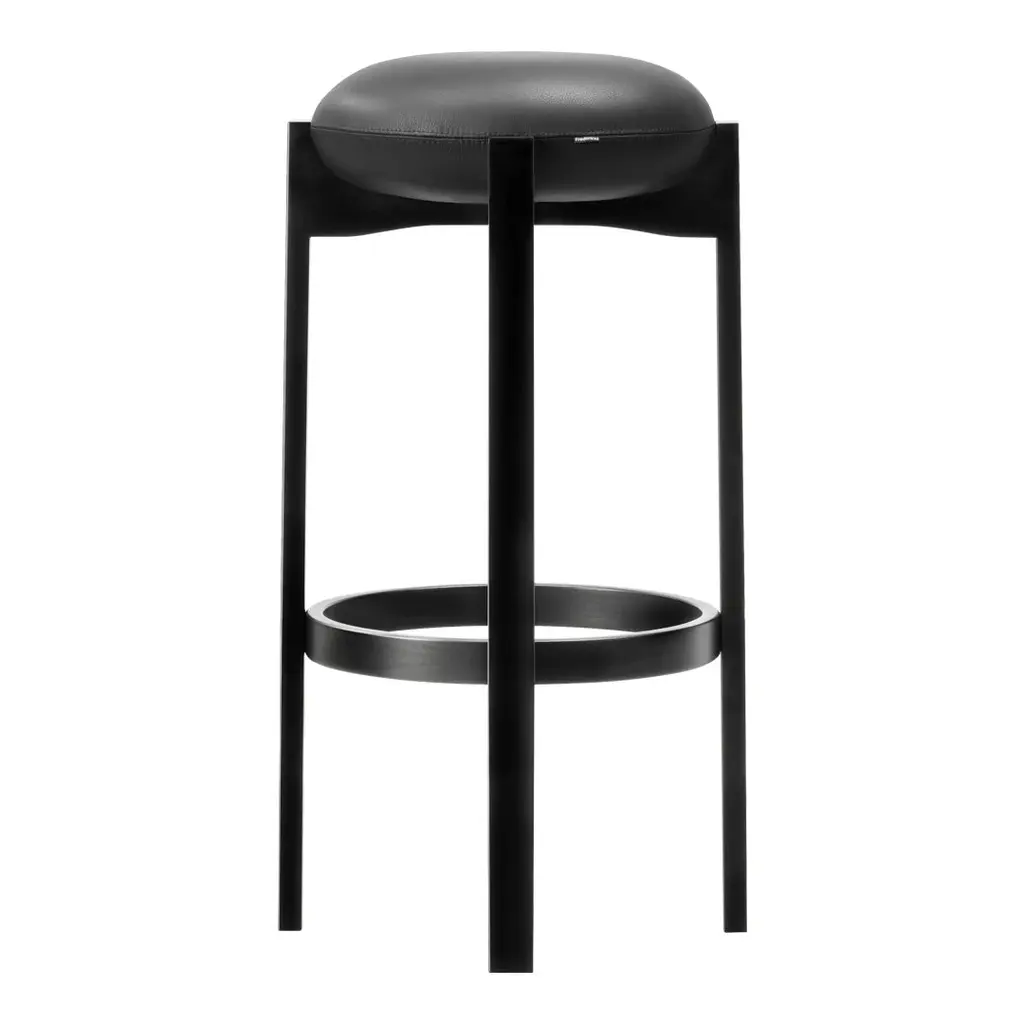 The sculptural Pioneer stools combine good seating comfort, functionality and a sculptural design language that elegantly combines the seat's soft and round design with the wooden frame's sensuality. The chair's simple, unique and distinctive combination of shapes and materials is a modern take on Scandinavian design that combines functionality with Bruun's recognisable sculptural minimalism. The four vertical legs of the wooden frame are united in a cross composition with elegant indentations, where the light, the upholstered seat cushion, is placed on top. In contrast, the detailed indentation on the underside completes the overall artistic impression.