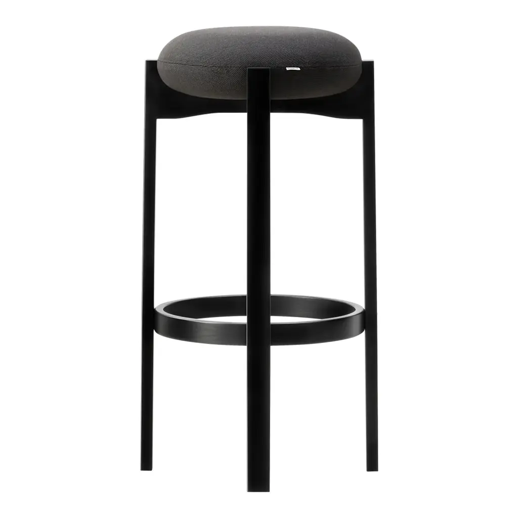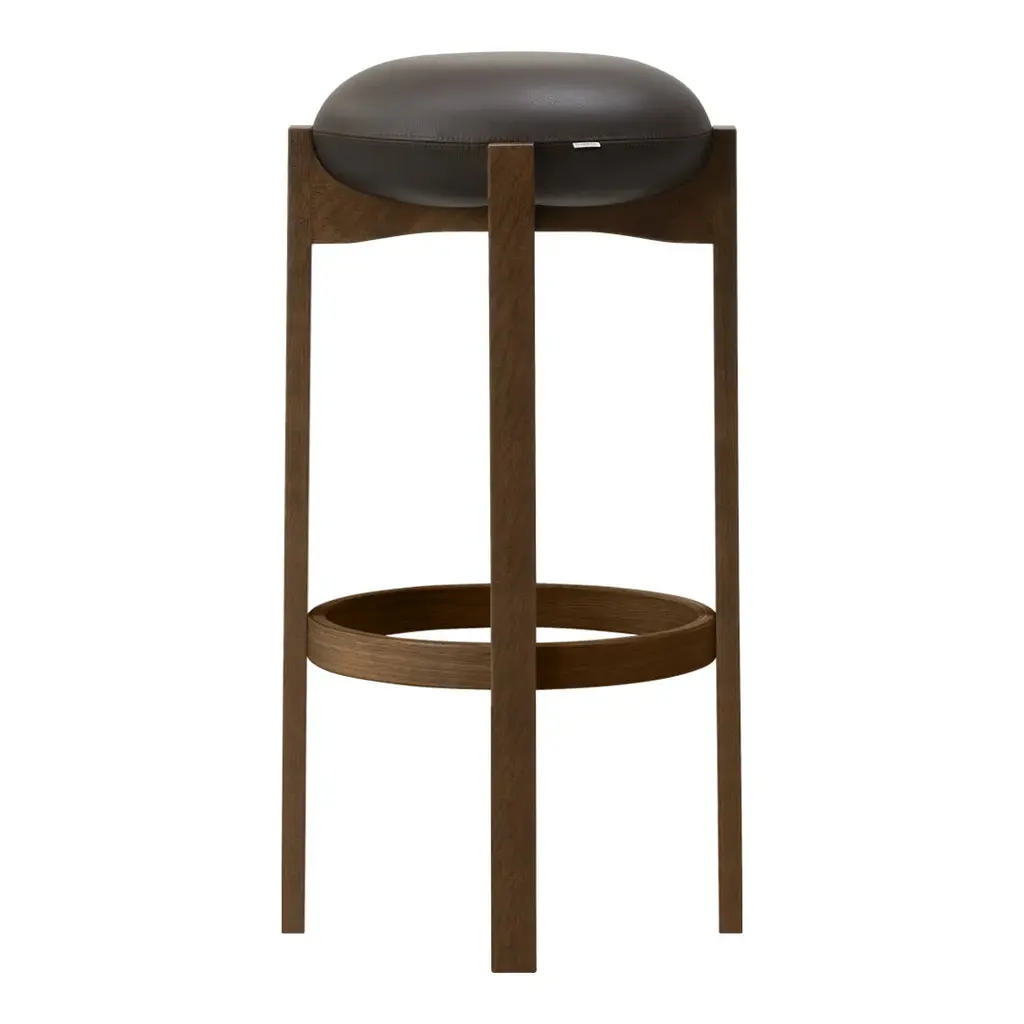 The sculptural Pioneer stools combine good seating comfort, functionality and a sculptural design language that elegantly combines the seat's soft and round design with the wooden frame's sensuality. The chair's simple, unique and distinctive combination of shapes and materials is a modern take on Scandinavian design that combines functionality with Bruun's recognisable sculptural minimalism. The four vertical legs of the wooden frame are united in a cross composition with elegant indentations, where the light, the upholstered seat cushion, is placed on top. In contrast, the detailed indentation on the underside completes the overall artistic impression.