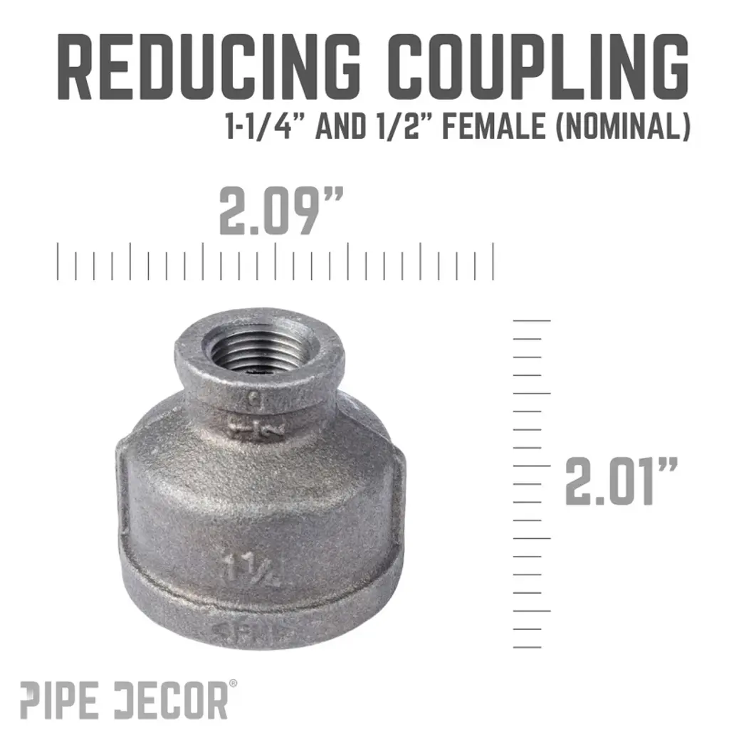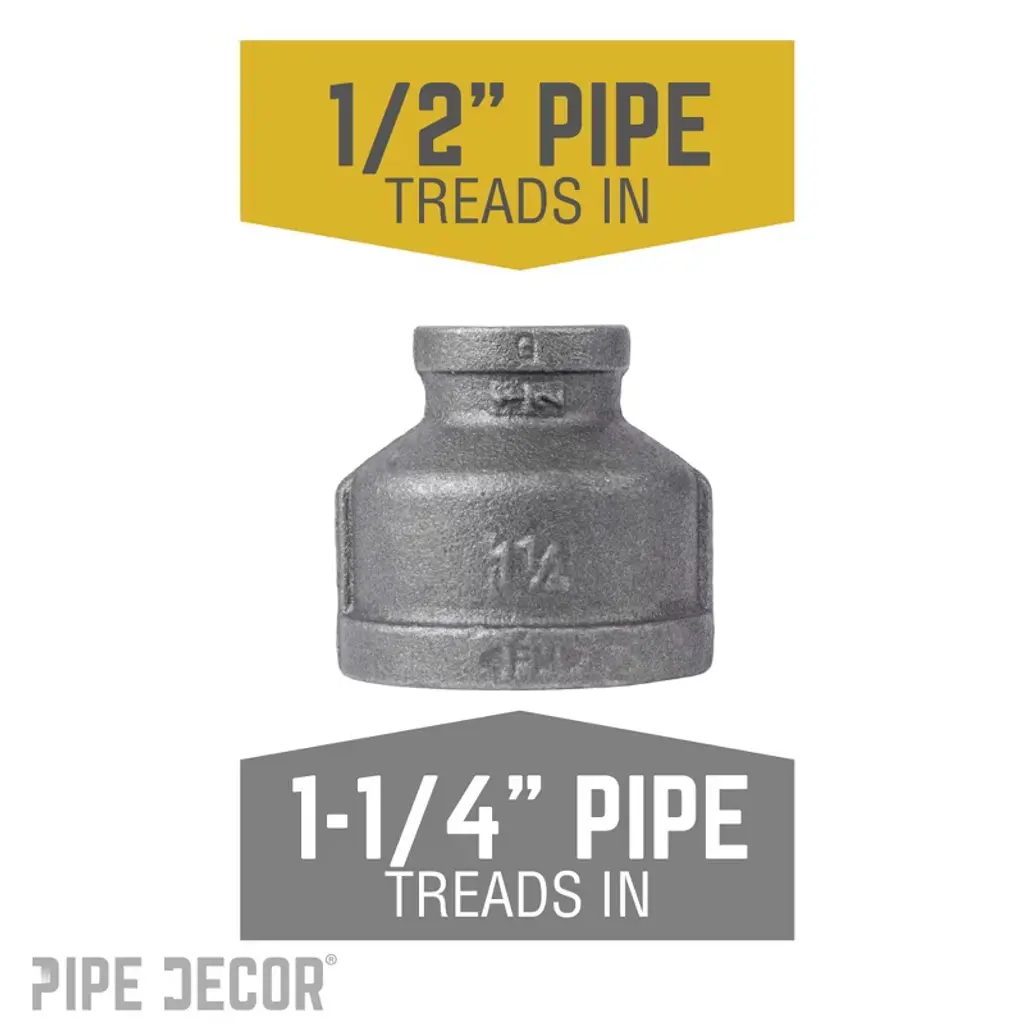 Pipe Decor 1 1/4 In. X 1/2 In. Black Reducing Coupling