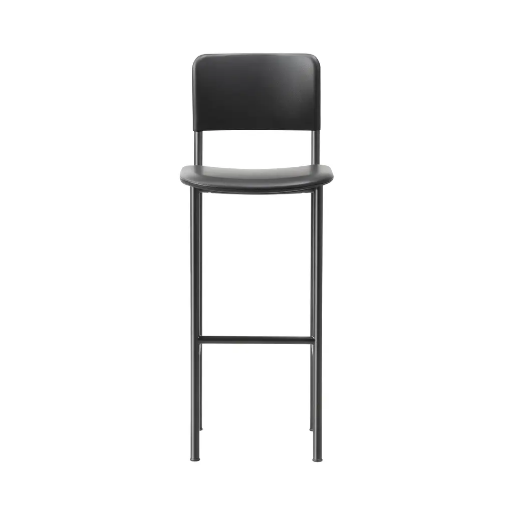 A compact footprint meets generous comfort in this barstool, making it ideal for both collaborative workspaces and refined hospitality settings. The steel tube frame—offered in powder-coated or brushed finishes—supports a fully upholstered seat and backrest. The inner backrest features a steel frame with moulded foam, while the seat is constructed from plywood with CMHR or HR foam, covered in fabric or leather.