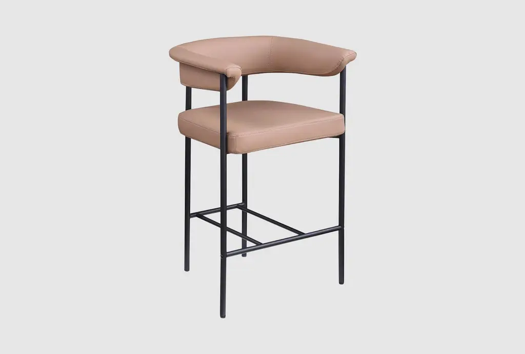 Built with a tubular steel frame, this barstool features a fully upholstered seat and backrest supported by armrests for added stability. Its slim profile and supportive design make it well-suited for high-use spaces like restaurants, bars, and communal work areas. The frame is available in several powder-coated and brushed steel finishes, while the upholstery can be customized in a range of textiles and leathers. Designed for circularity, the stool is made with modular components to allow for easy repair, replacement, and recycling. Offered in two height options to accommodate counter or bar seating.