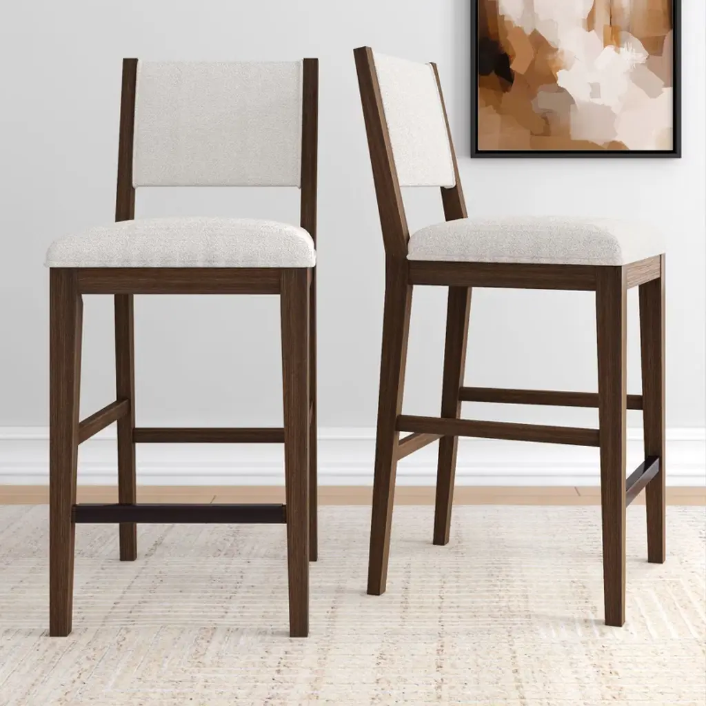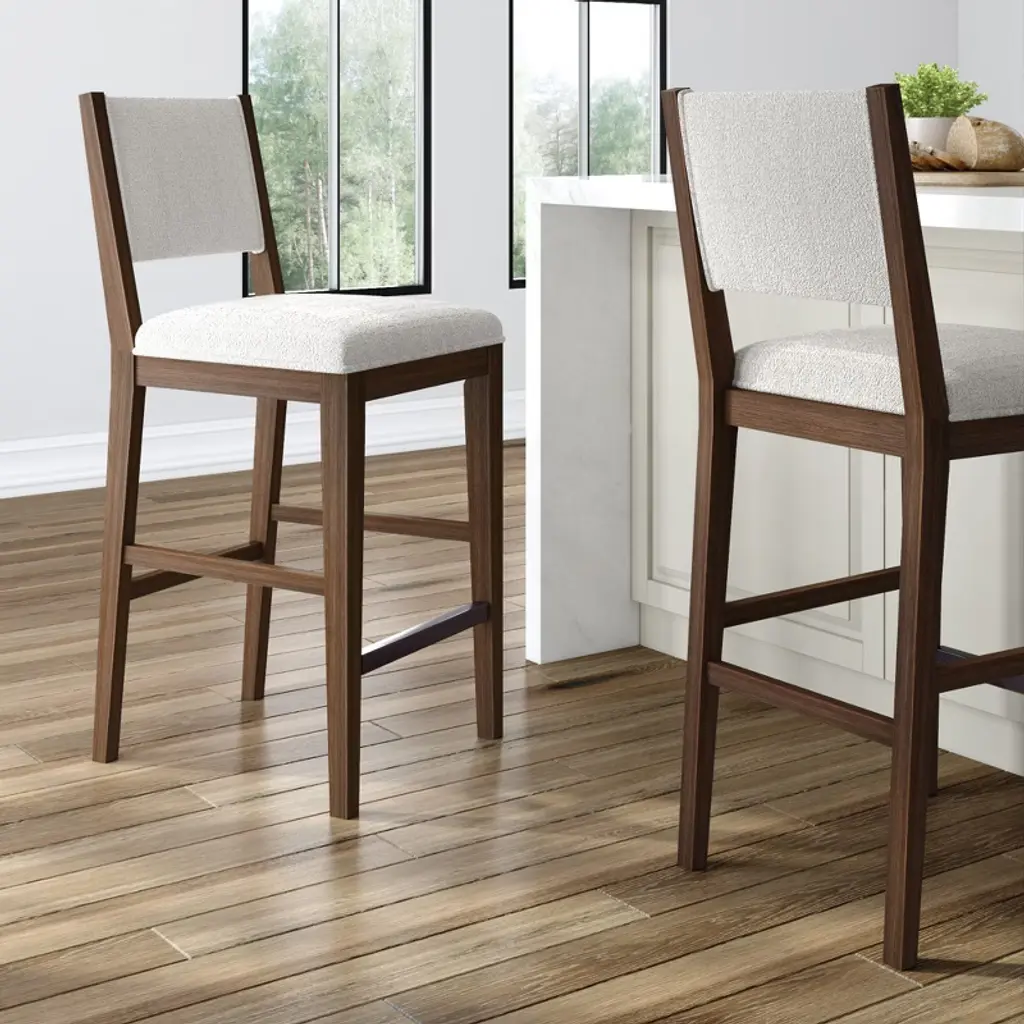 Plank+beam 30" Counter Bar Stool, Solid Wood Modern Kitchen Stools With Cushion, Walnut