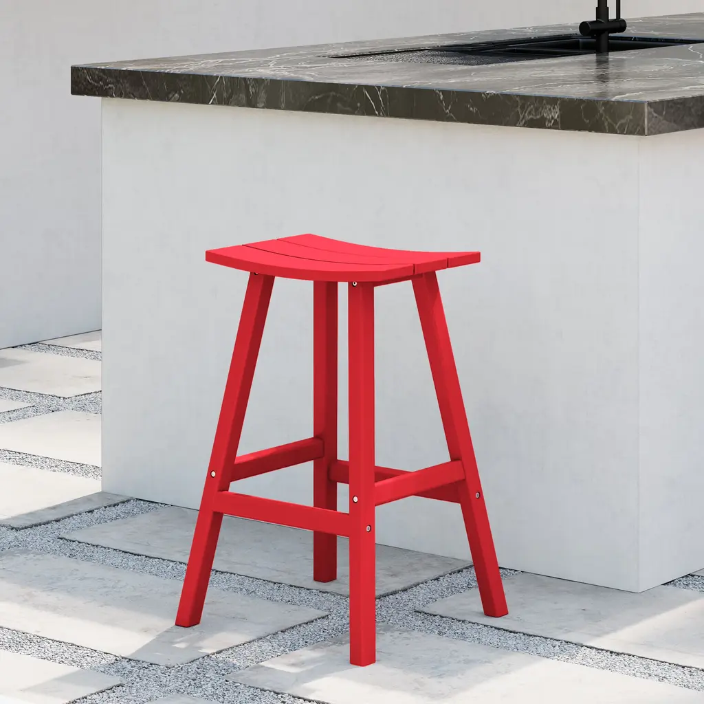 Polytrends Laguna Hdpe All Weather Outdoor Patio 29" Saddle Seat Bar Stool - Red