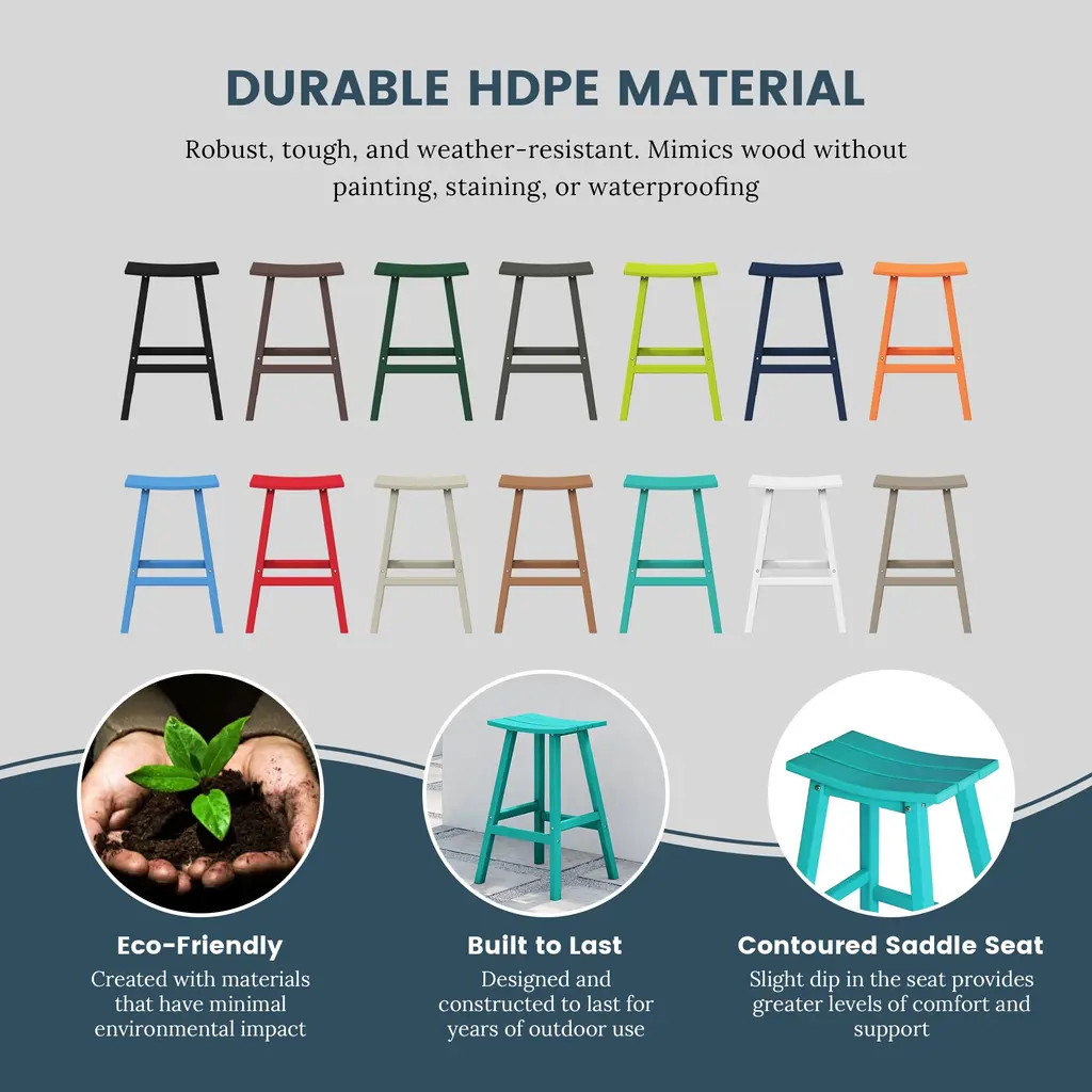 Polytrends Laguna Hdpe All Weather Outdoor Patio 29" Saddle Seat Bar Stool (Set Of 2) - Turquoise