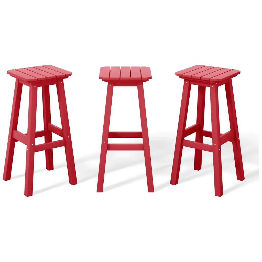 Polytrends Laguna Hdpe All Weather Outdoor Patio 29" Square Bar Stool (Set Of 3) - Red