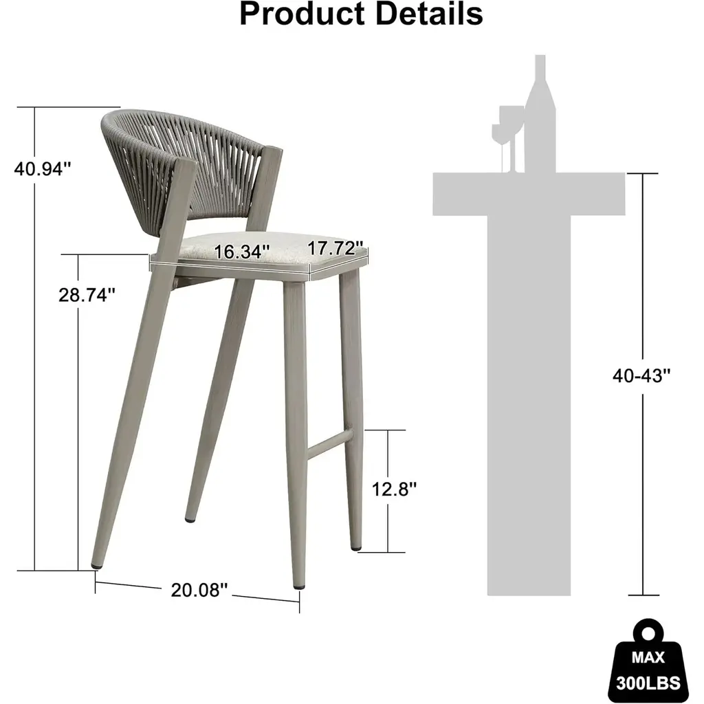 The one-piece seat pan and backrest provide the ultimate in comfort. The patio stool is made of high quality all-weather polyethylene rattan, durable and UV resistant. The grey finished aluminum frame is sturdy and rust-resistant for long-term outdoor use. The all-weather woven resin wicker backrests will relieve back fatigue, and the footrest gives you extra space to rest your legs. The chair has a comfortable seat, and you can spend time enjoying this modern and classic bar stool anytime. What's Included? Features: